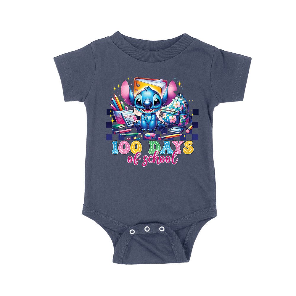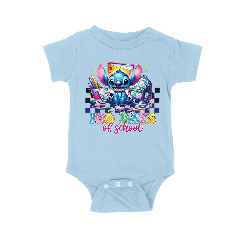 100 Days of School Cute Blue Creature T-Shirt, Fun Classroom Celebration Shirt, Adorable Back to School Outfit for Kids and Teachers Unisex Baby Jersey