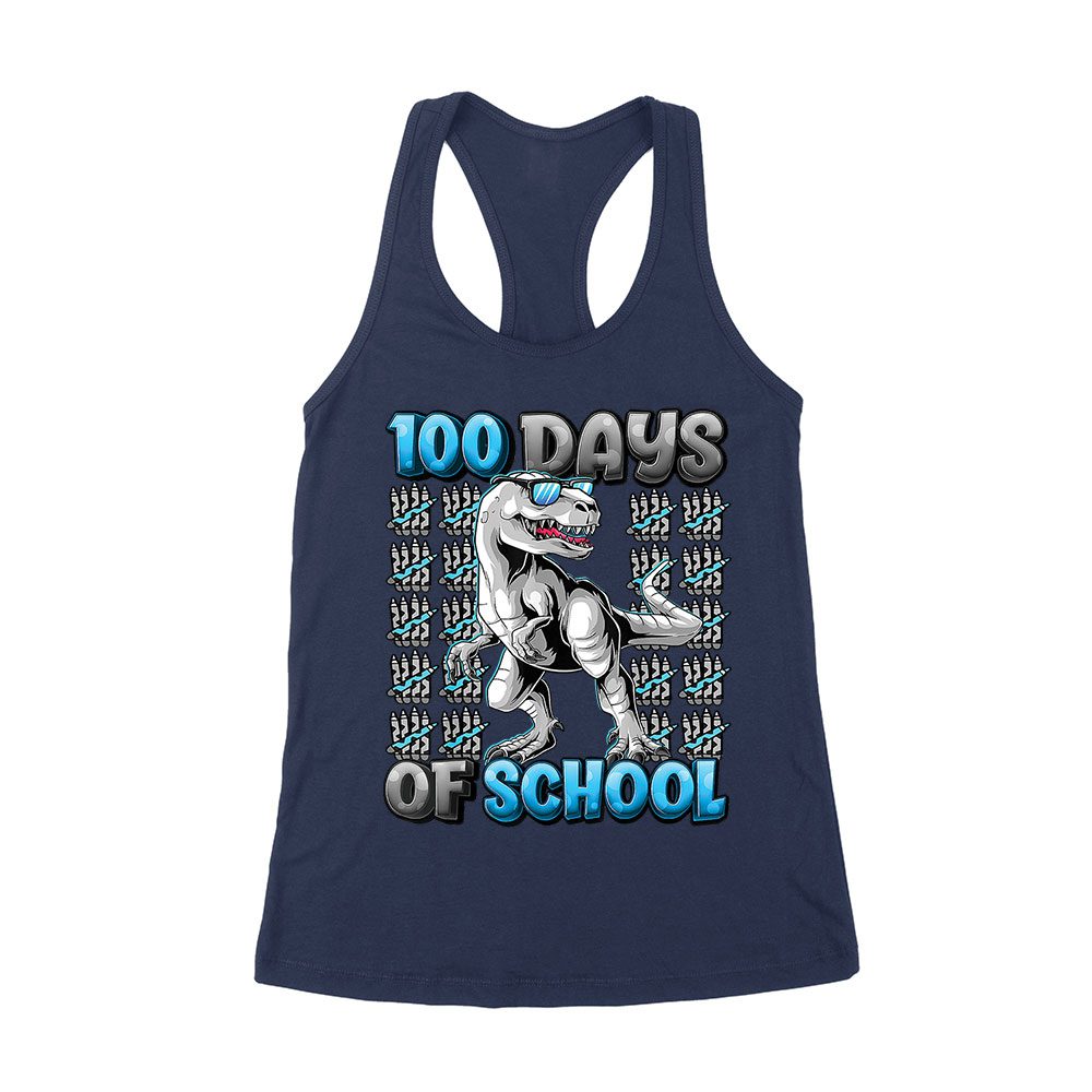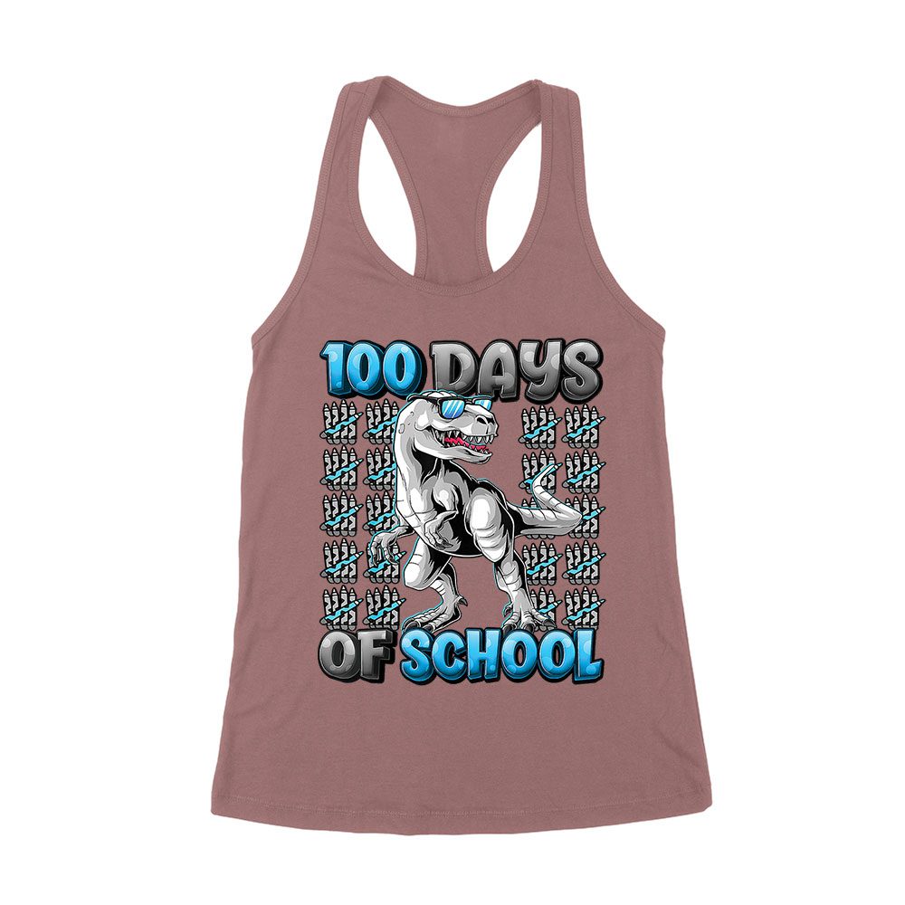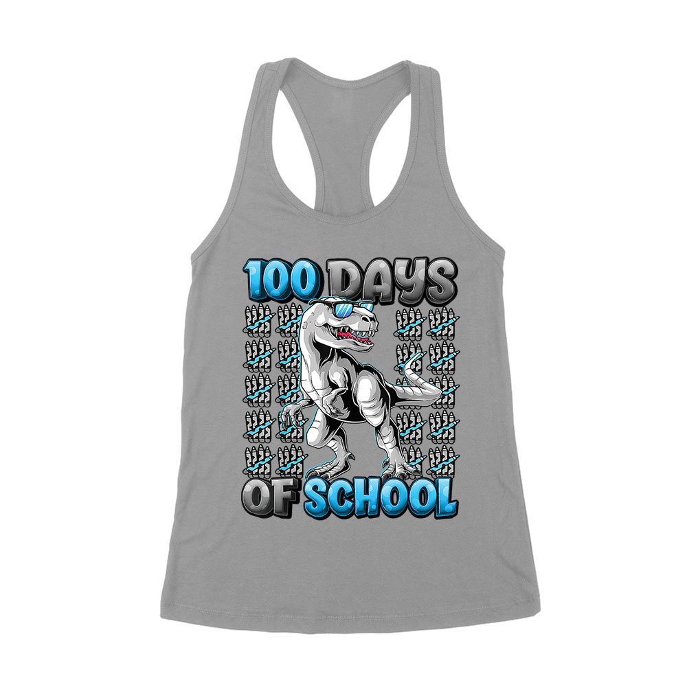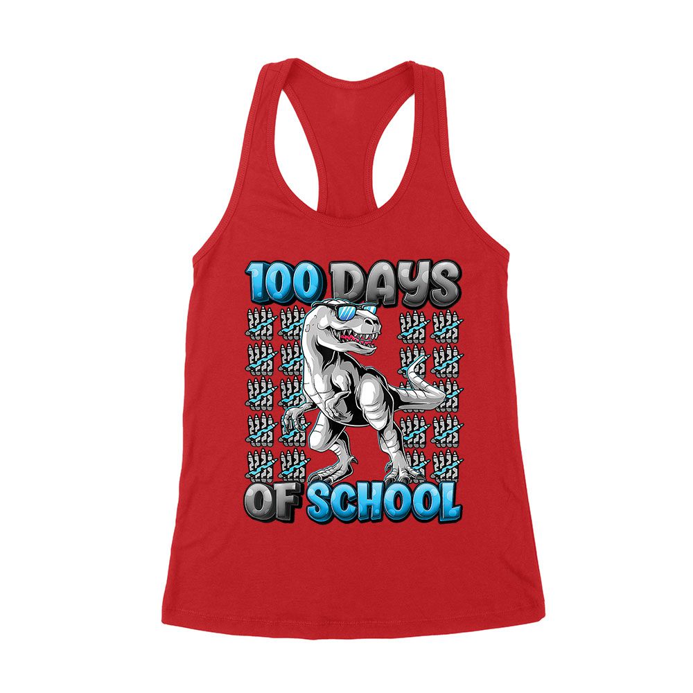 100 Days of School T-Rex Design – Fun Dinosaur Kids and Teacher Milestone Shirt Women’s Racerback Tank Top
