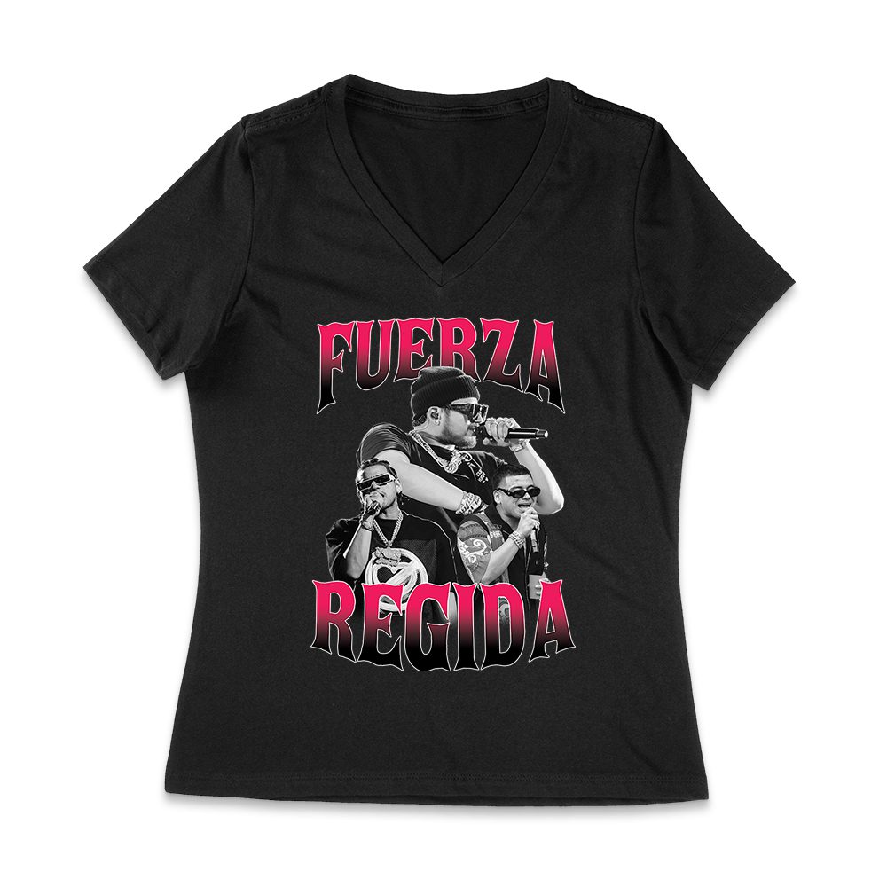 111-xpantia Fuerza Regida Photo Collage – Regional Mexican Music Group T-Shirt Design Women Jersey V-Neck