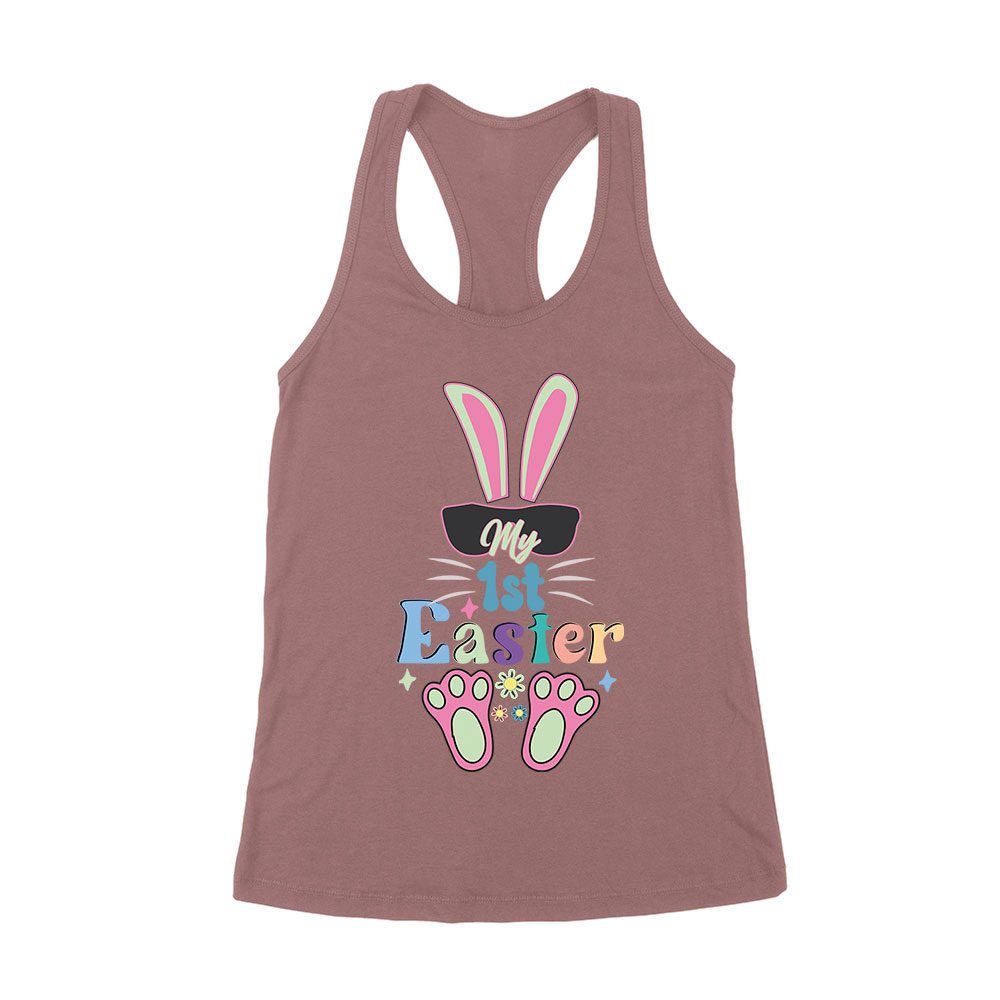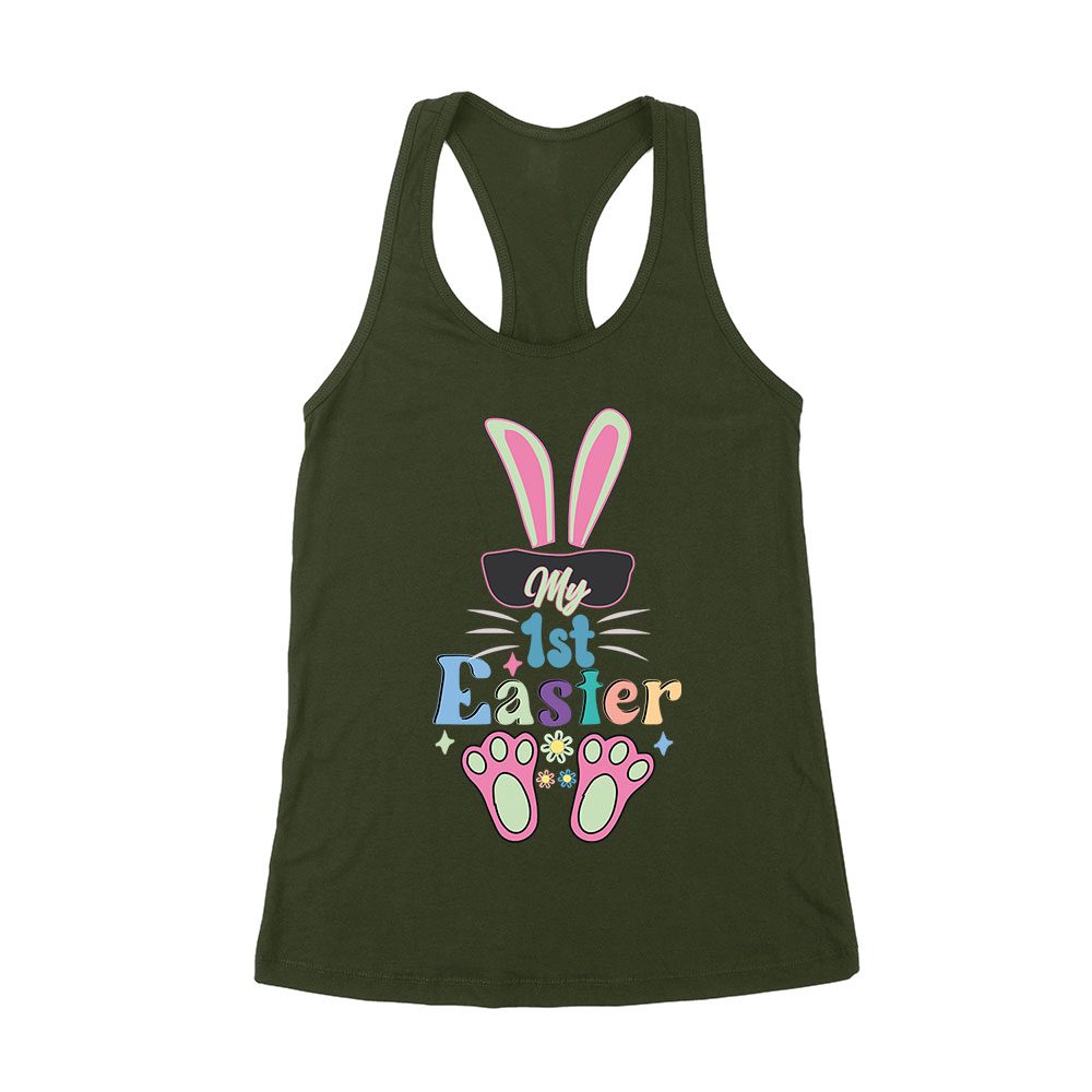1st Easter T-Shirt – Adorable Baby?s First Easter Outfit with Cute Bunny & Colorful Eggs Women’s Racerback Tank Top