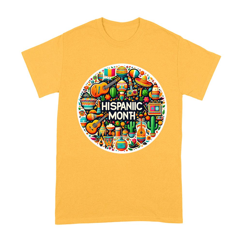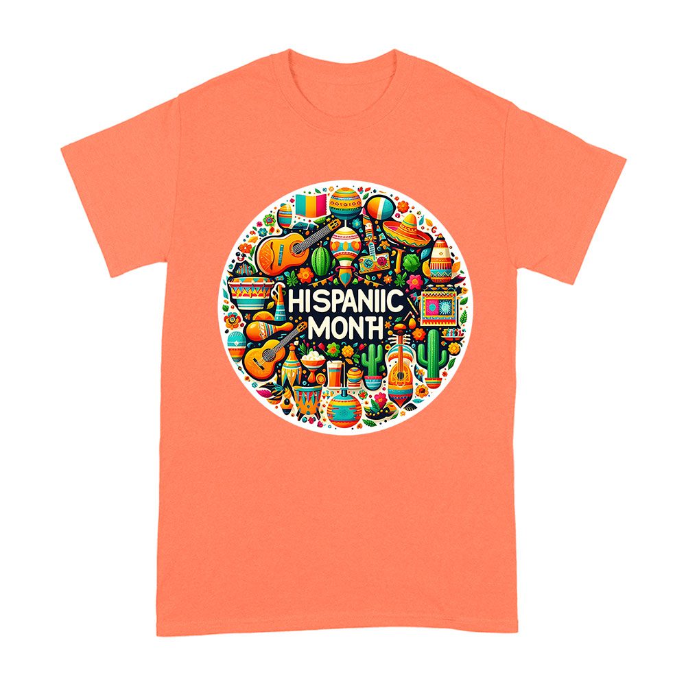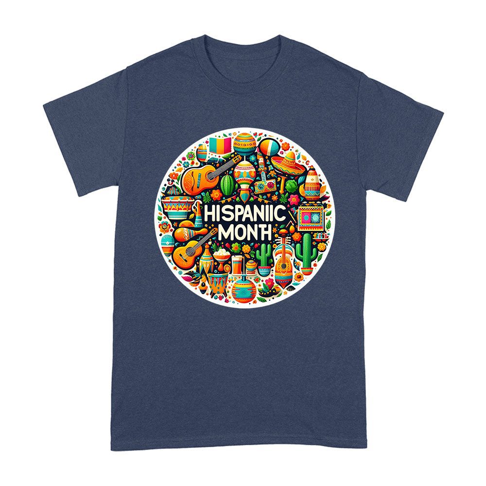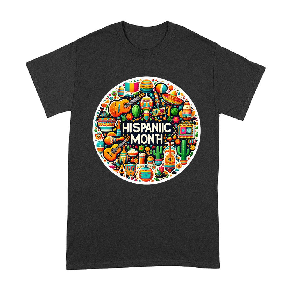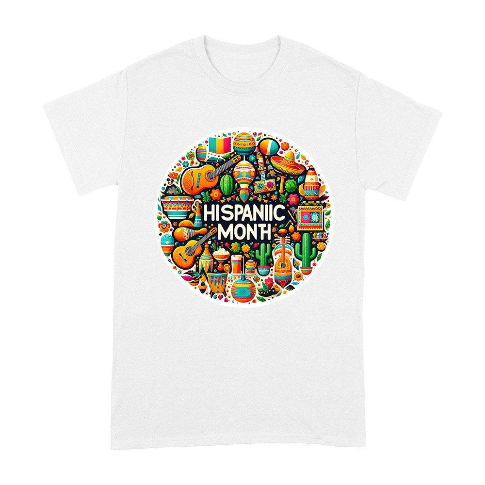 Hispanic Month, cultural icons, bold design, Latinx, heritage, Hispanic culture, Latin American pride, festive celebration, unity, vibrant t-shirt, diversity, tradition, Latin America: