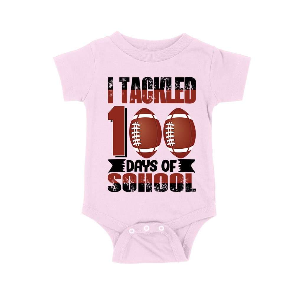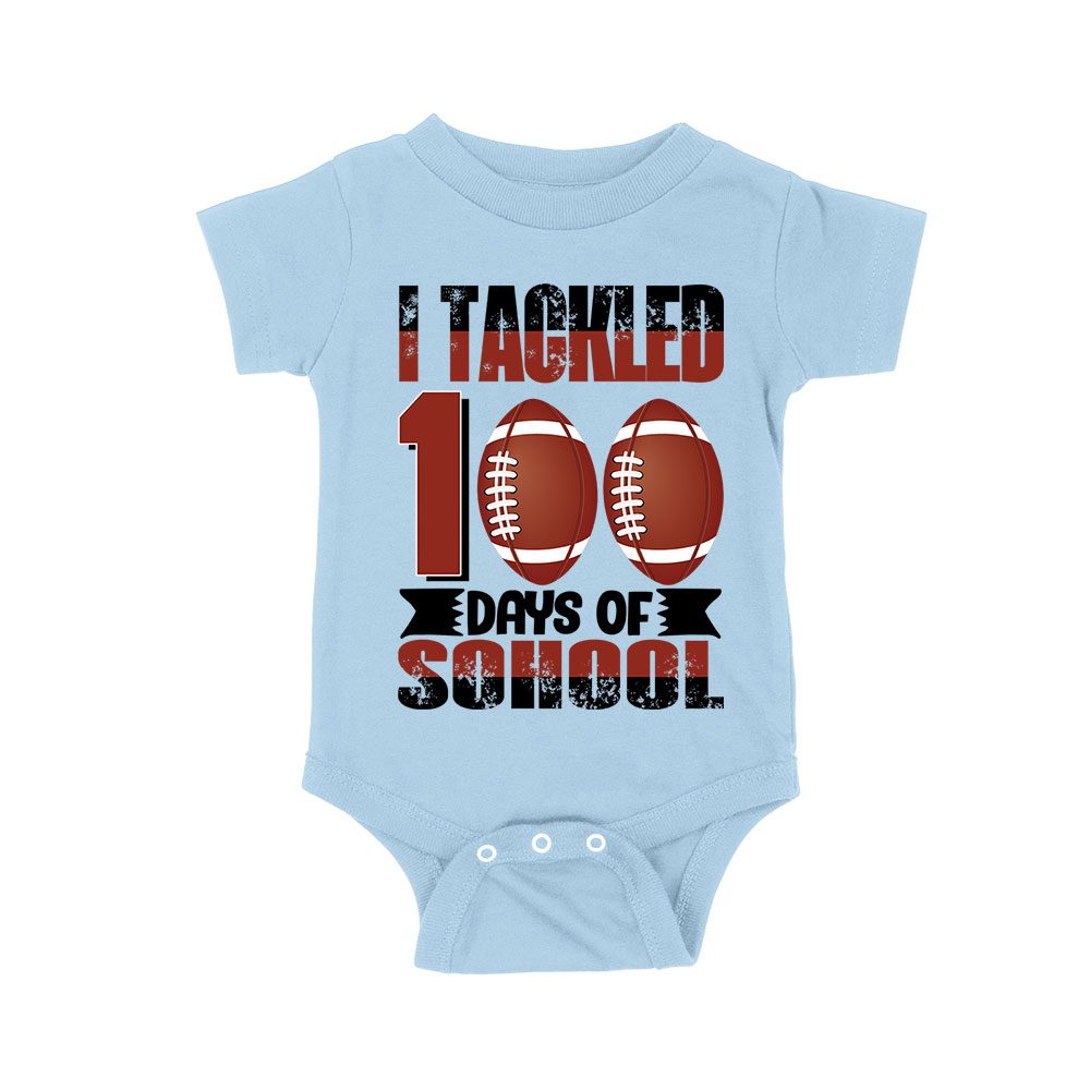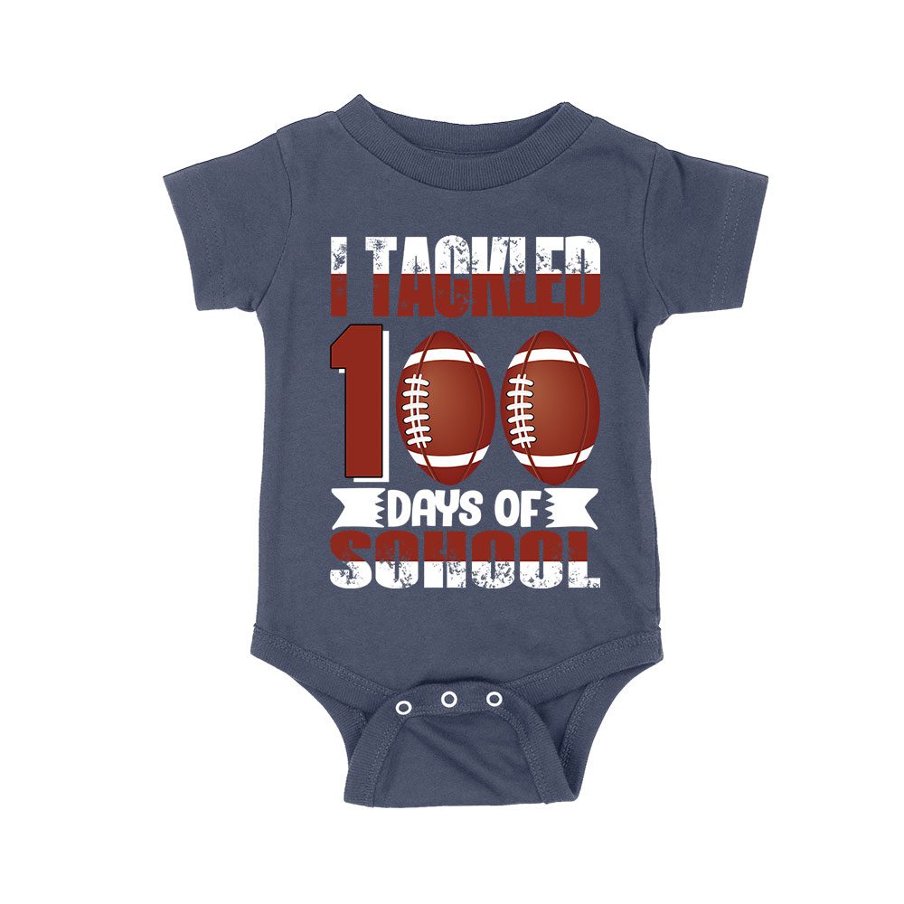 100 days of school, tackled school shirt, football milestone shirt, kids 100 days shirt, teacher celebration shirt, fun football t-shirt, school event apparel, milestone football tee, colorful kids t-shirt, teacher football shirt: