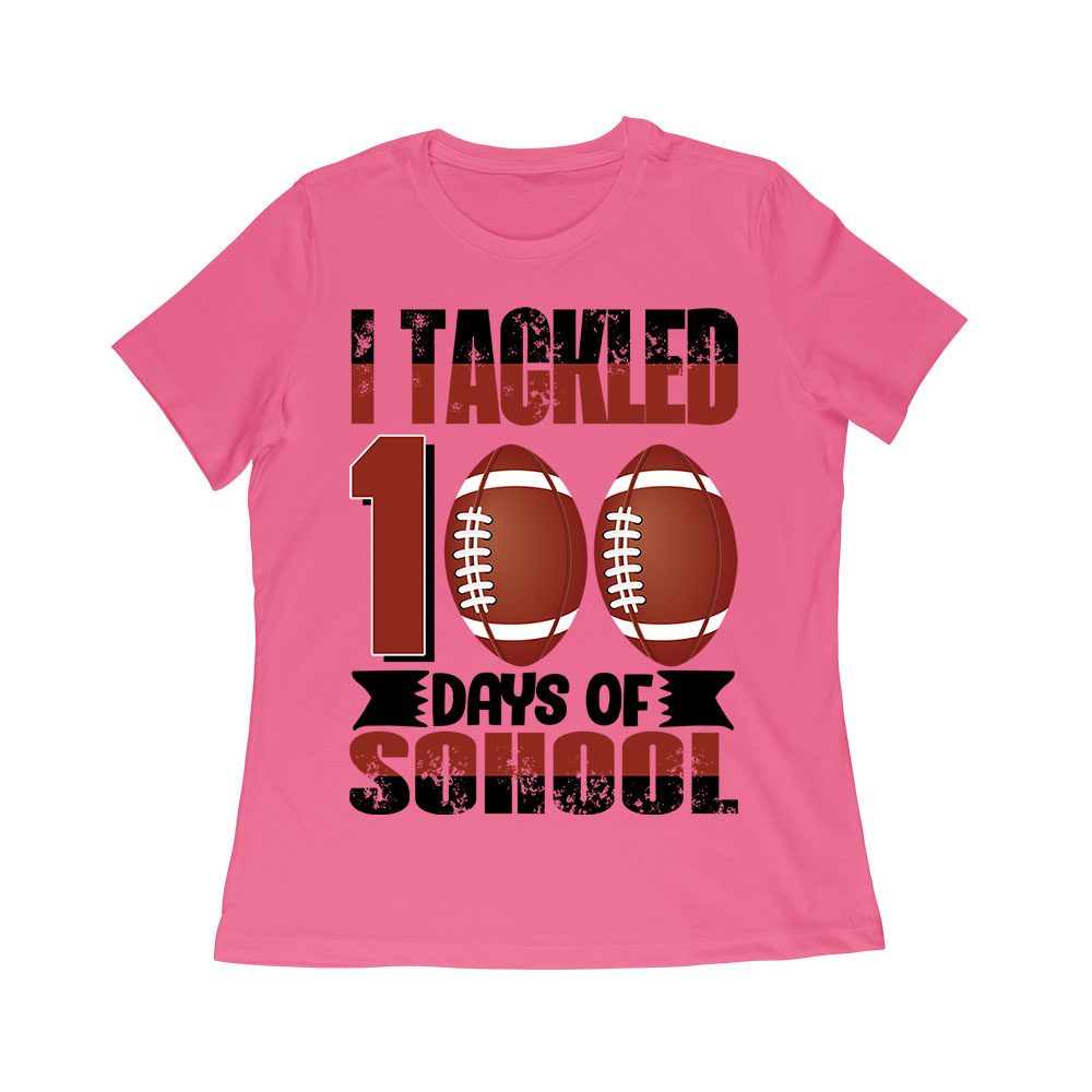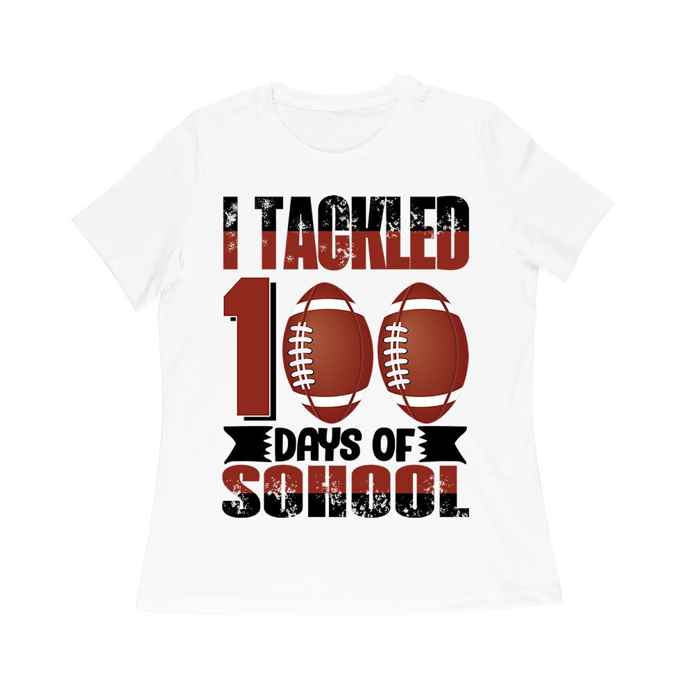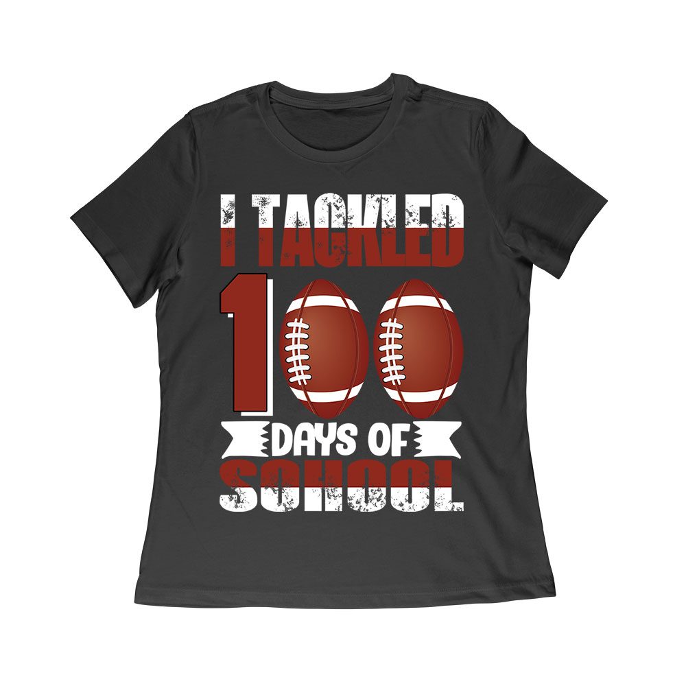 100 days of school, tackled school shirt, football milestone shirt, kids 100 days shirt, teacher celebration shirt, fun football t-shirt, school event apparel, milestone football tee, colorful kids t-shirt, teacher football shirt: