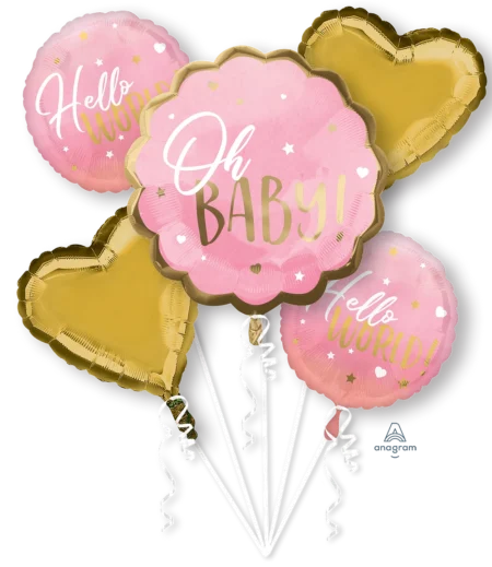 Baby Girl Foil Balloon Bouquet (5 Balloons), Baby shower, Birthday Party