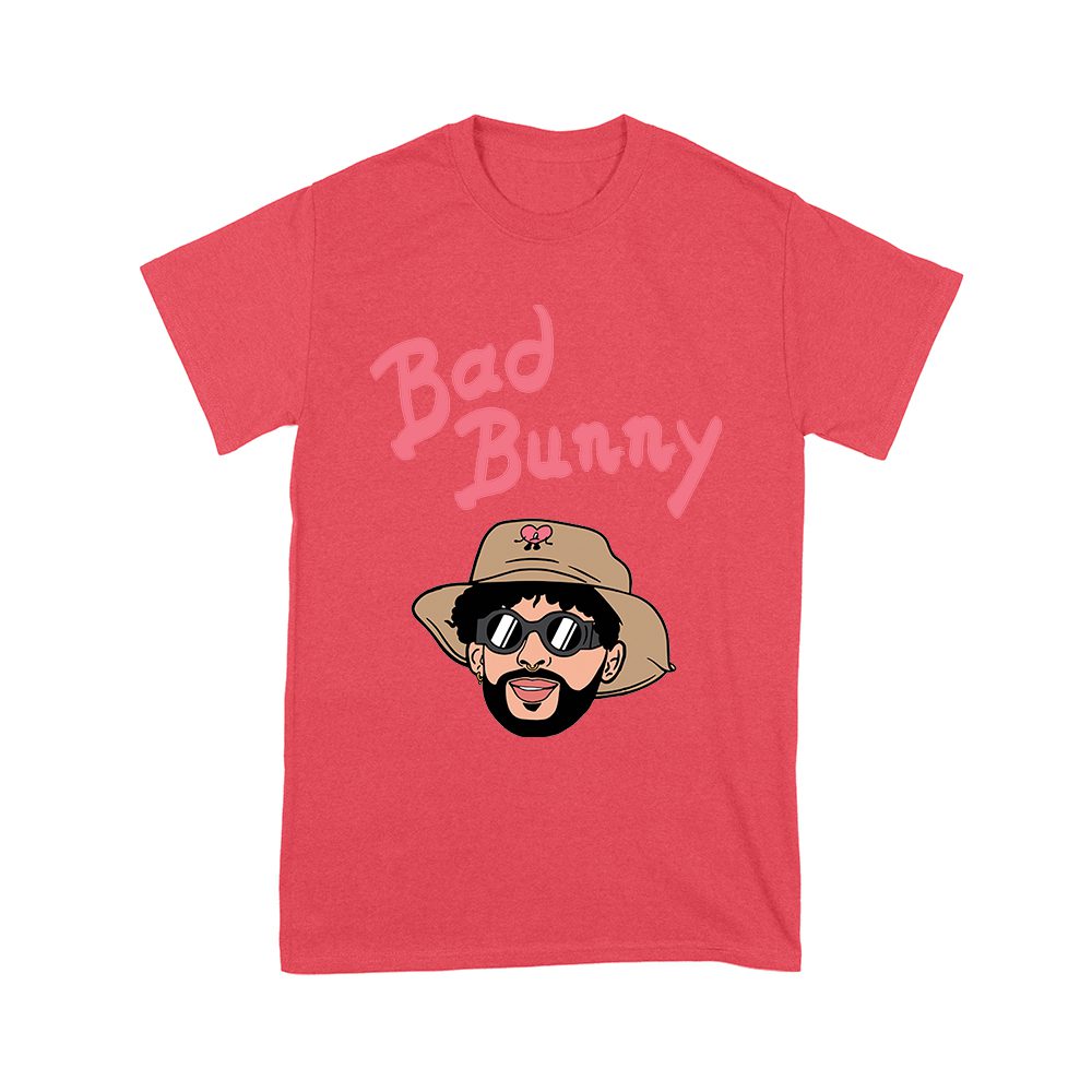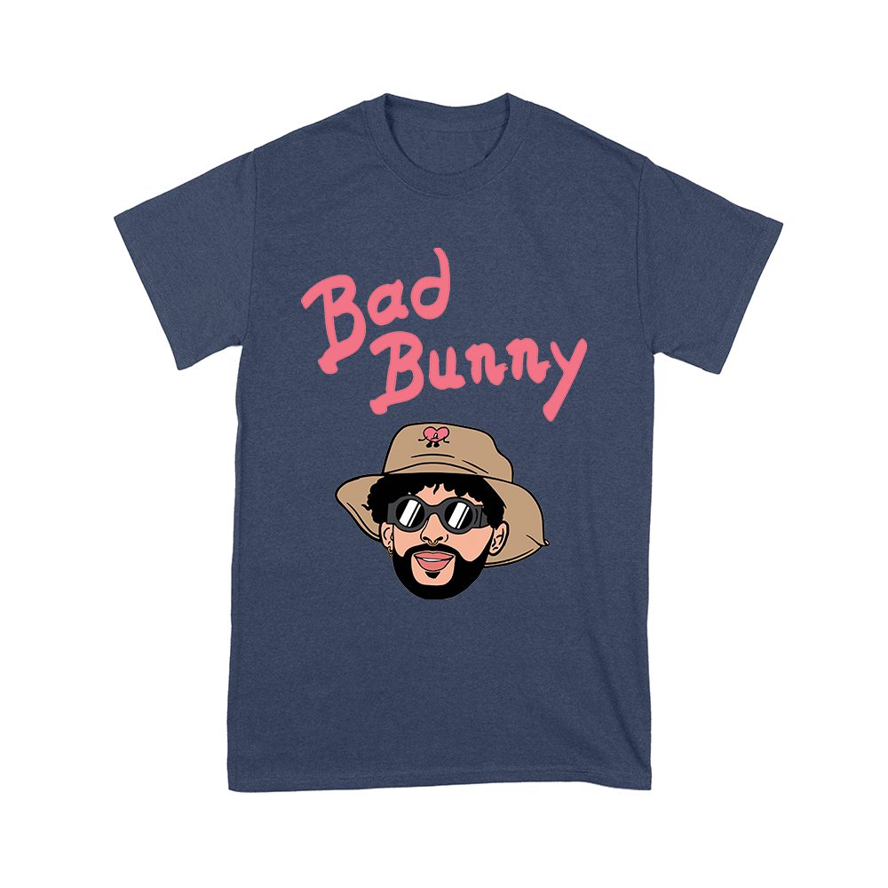 Bad-Bunny Cartoon Style Portrait with Hat and Sunglasses – Fun Music-Inspired Pop Art Illustration Unisex Youth
