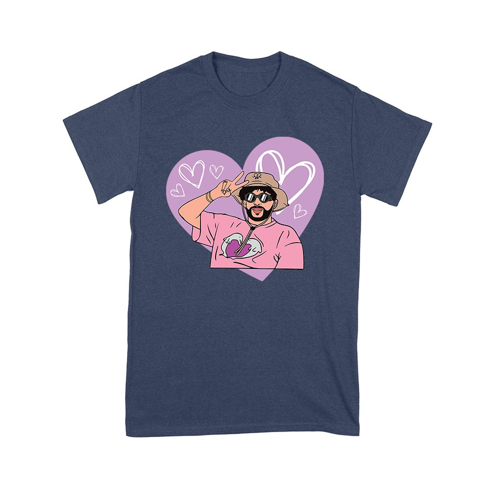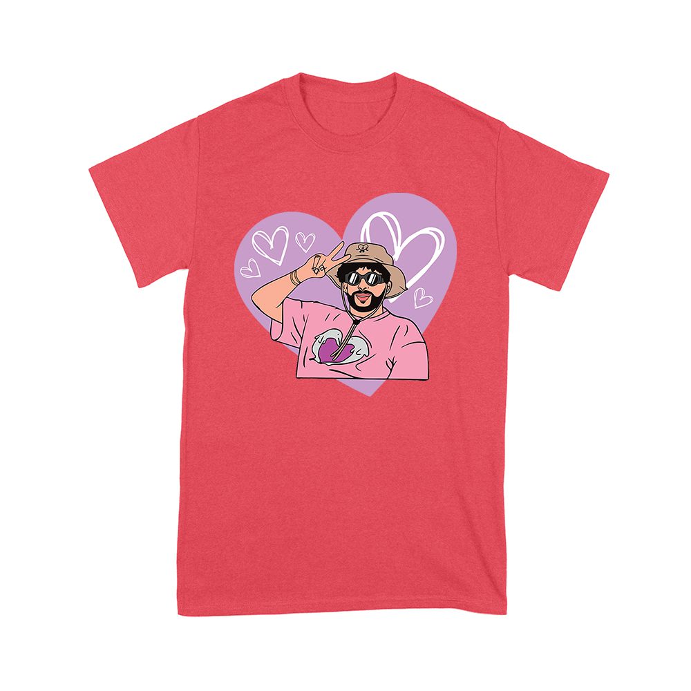 Bad-Bunny Character with Pink Heart Background ? Urban Latin Pop Art Style Illustration Unisex Youth