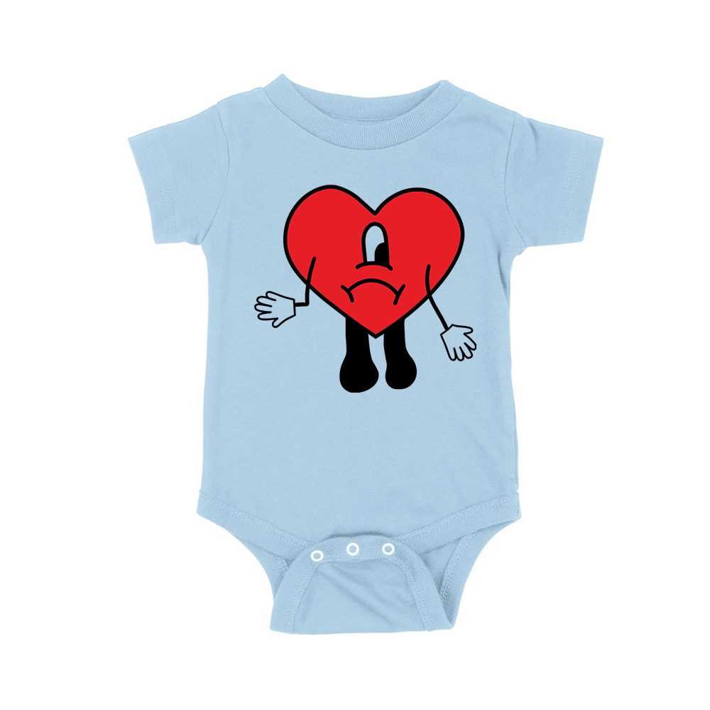 Bad-Bunny shirt; red-heart cartoon tee; Latin music merch; emotional heart design; Ojitos Lindos inspired shirt; sad heart graphic; tropical sunset t-shirt; cute Bad Bunny fanwear; beach vibe apparel; reggaeton fashion; — perfect for birthdays, parties, and celebrations.