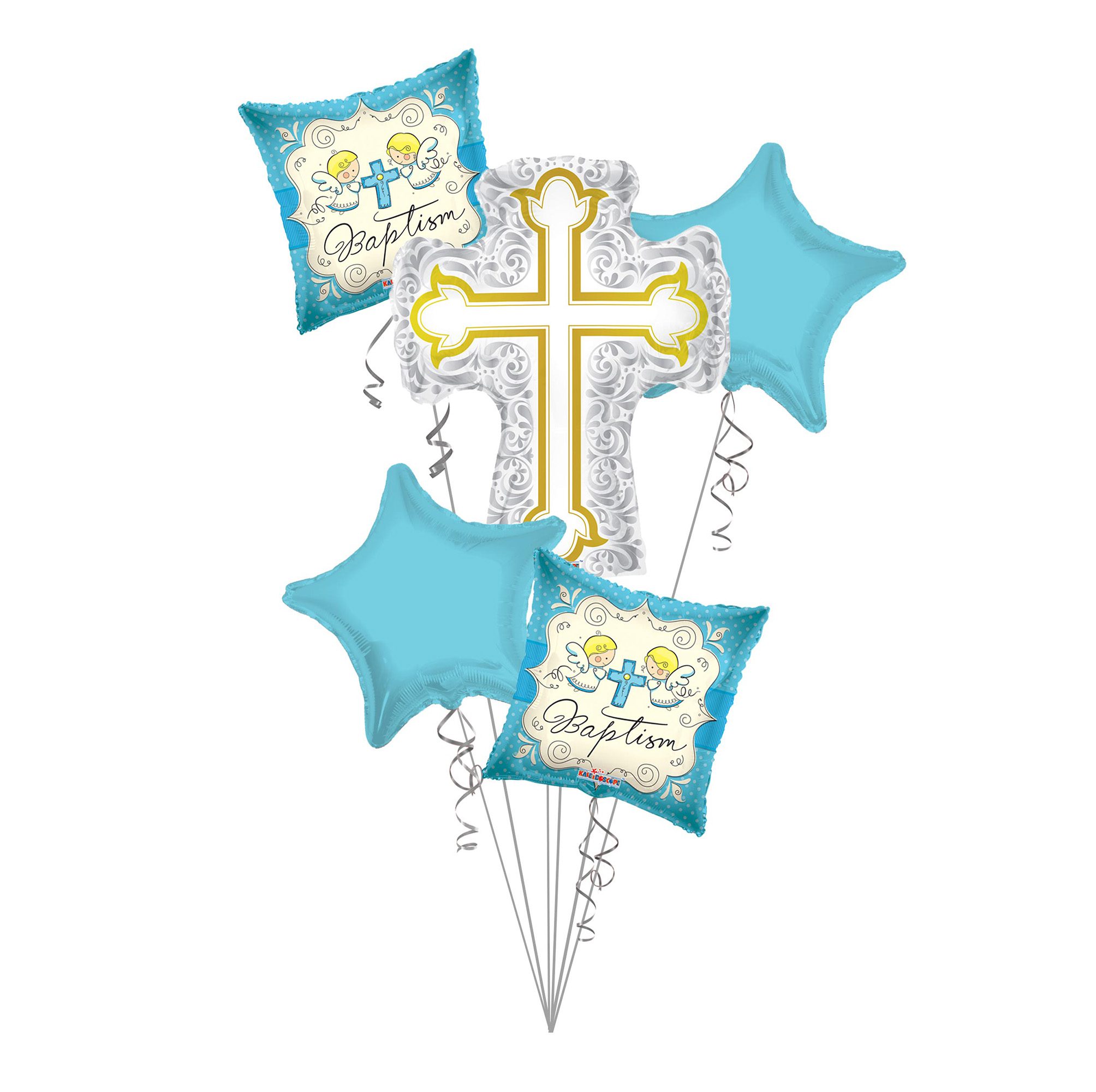Baptism, Balloon, Bouquet, Baptism, Silver, Gold, Cross, Balloon, Bouquet, Baby, Boy, Christening: