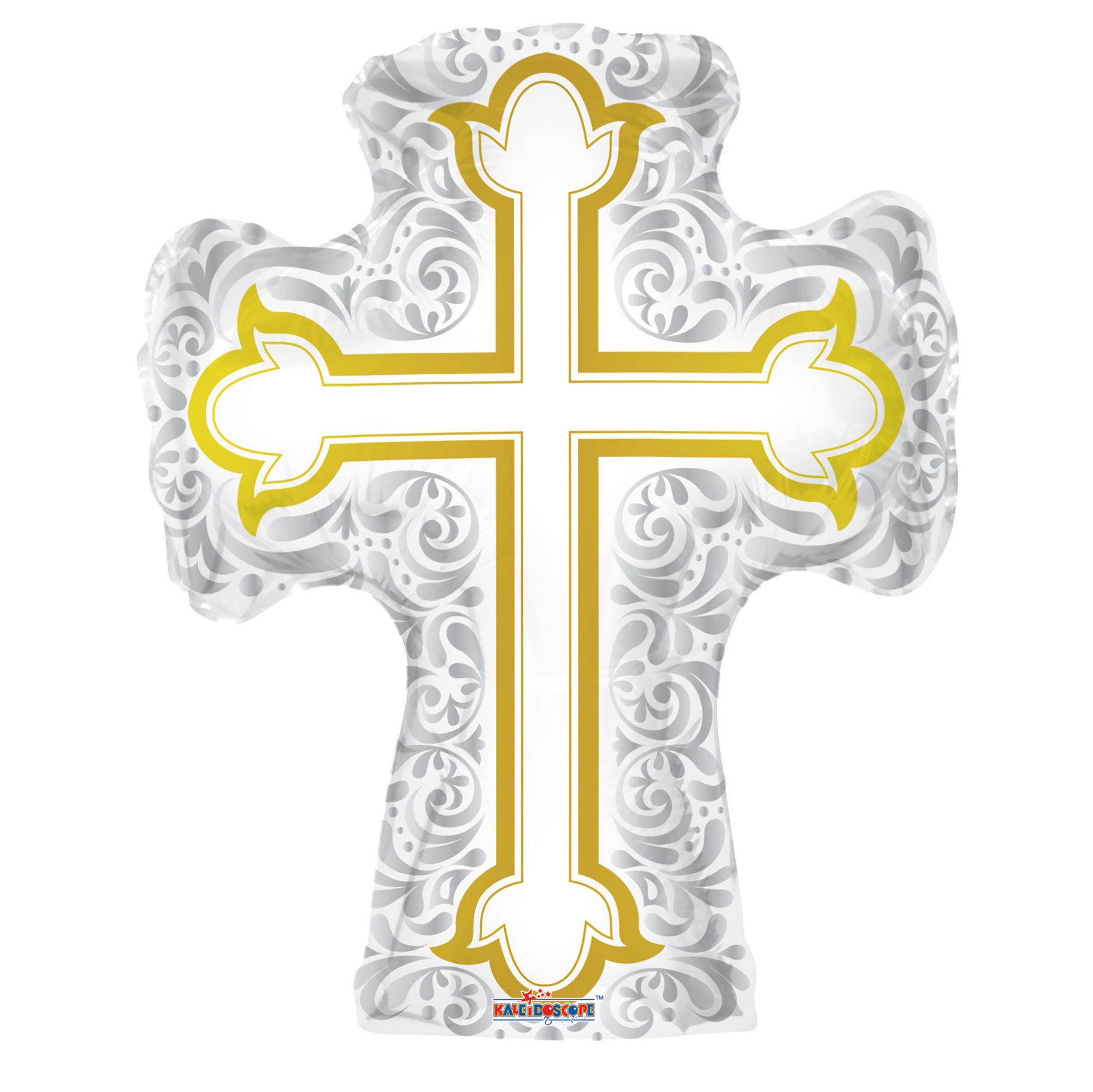 1 of 28 Inch Giant Silver & Gold Cross Foil Balloon.