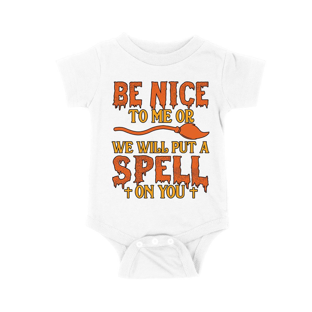 Beware! Be nice to me or we will put a spell on you – Funny Halloween Spellcaster T-Shirt Unisex Baby Jersey