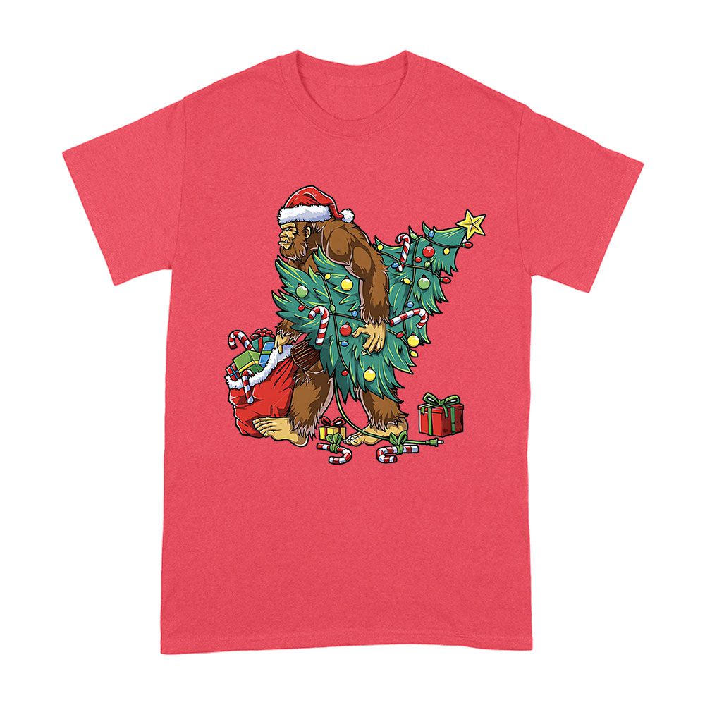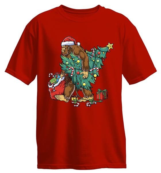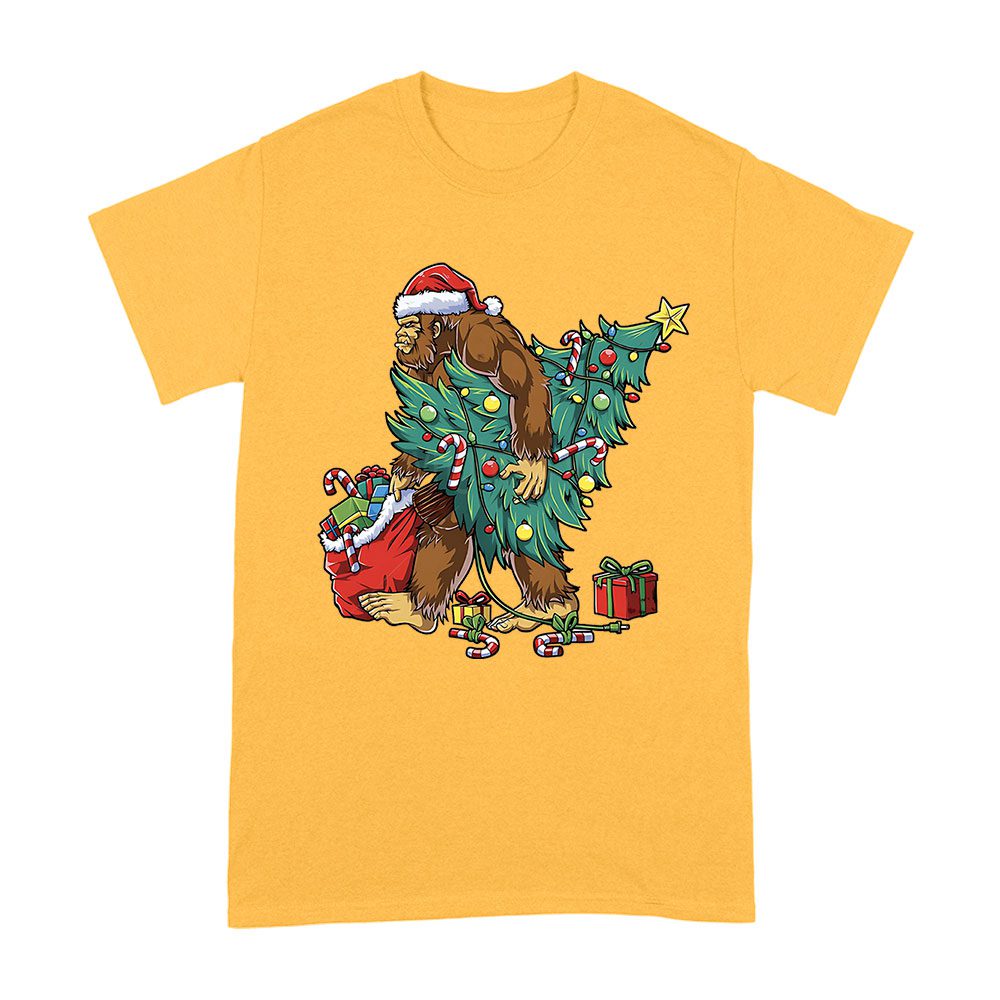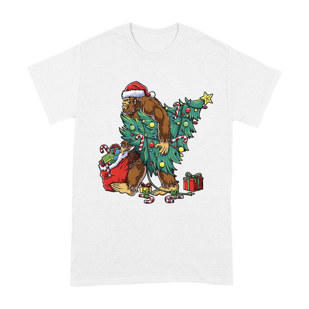Bigfoot Christmas Tree Lights T-Shirt – Festive Xmas Tee for Boys, Men & Sasquatch Lovers