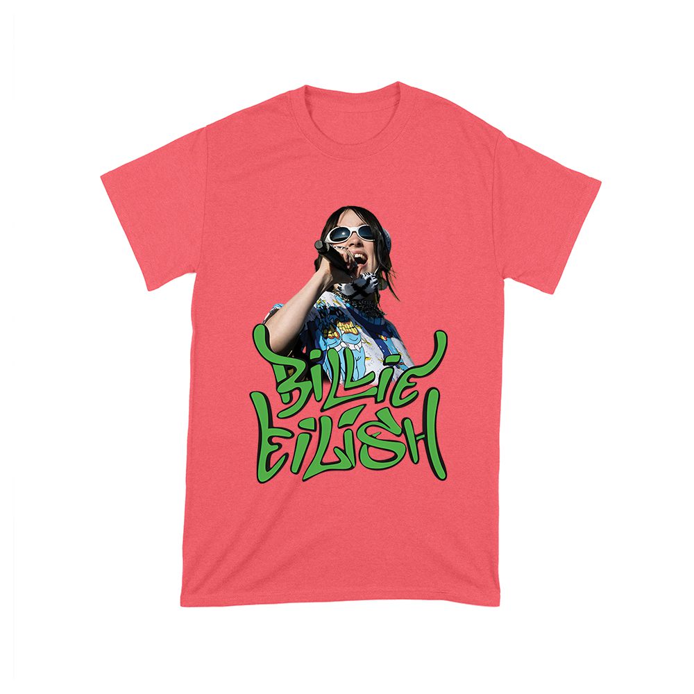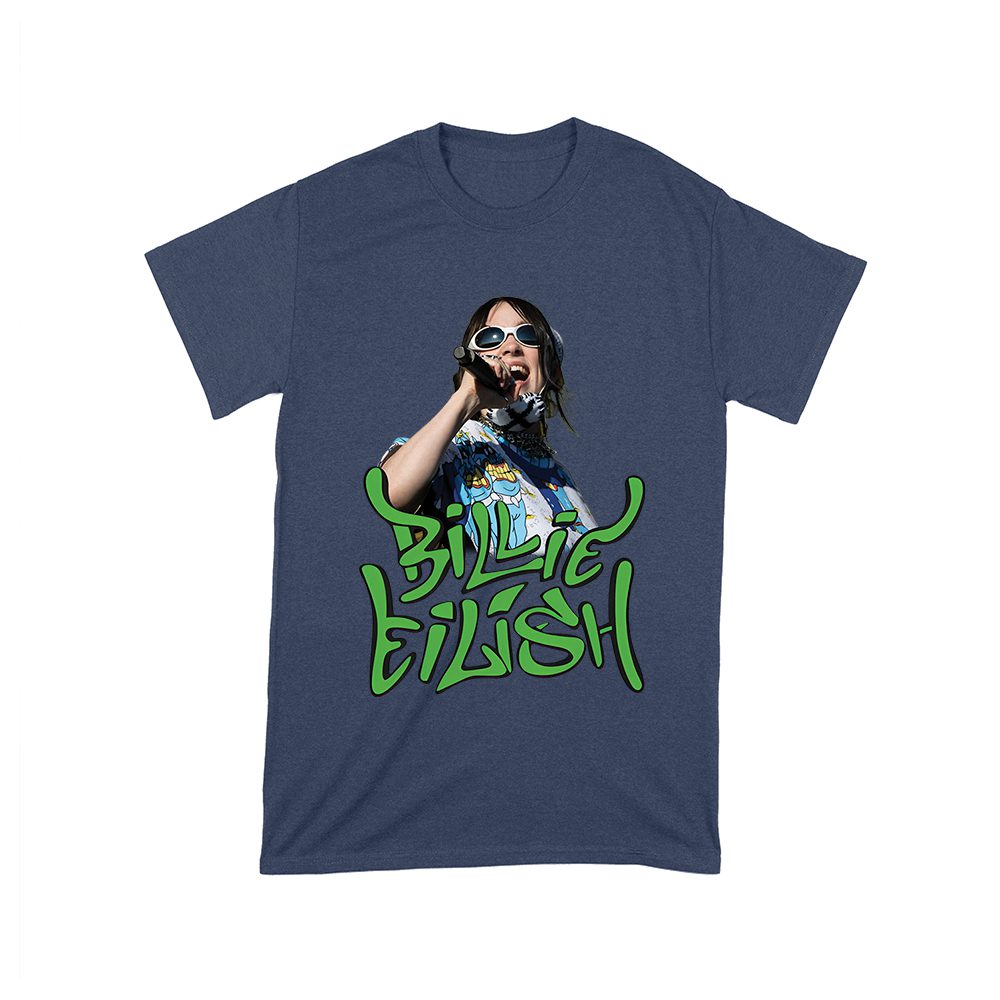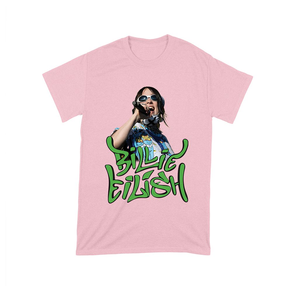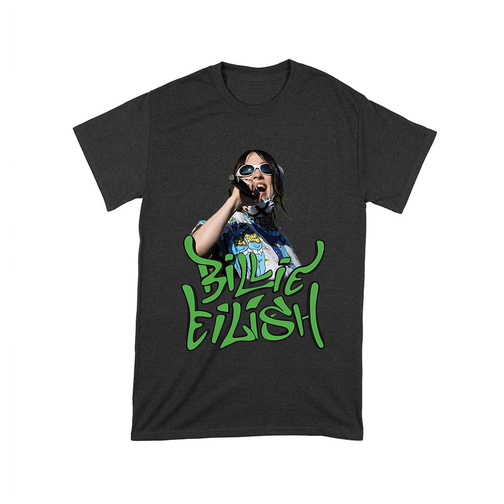 Billi-Eilish t-shirt; green streetwear shirt; music artist tee; fan graphic shirt; pop star clothing; stylish Billie Eilish tee; edgy pop design; concert outfit; cool music shirt; graphic fanwear — perfect for birthdays, parties, and celebrations.