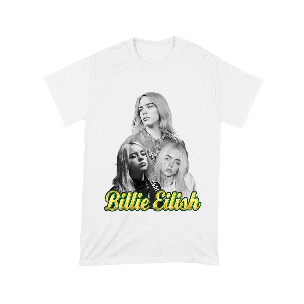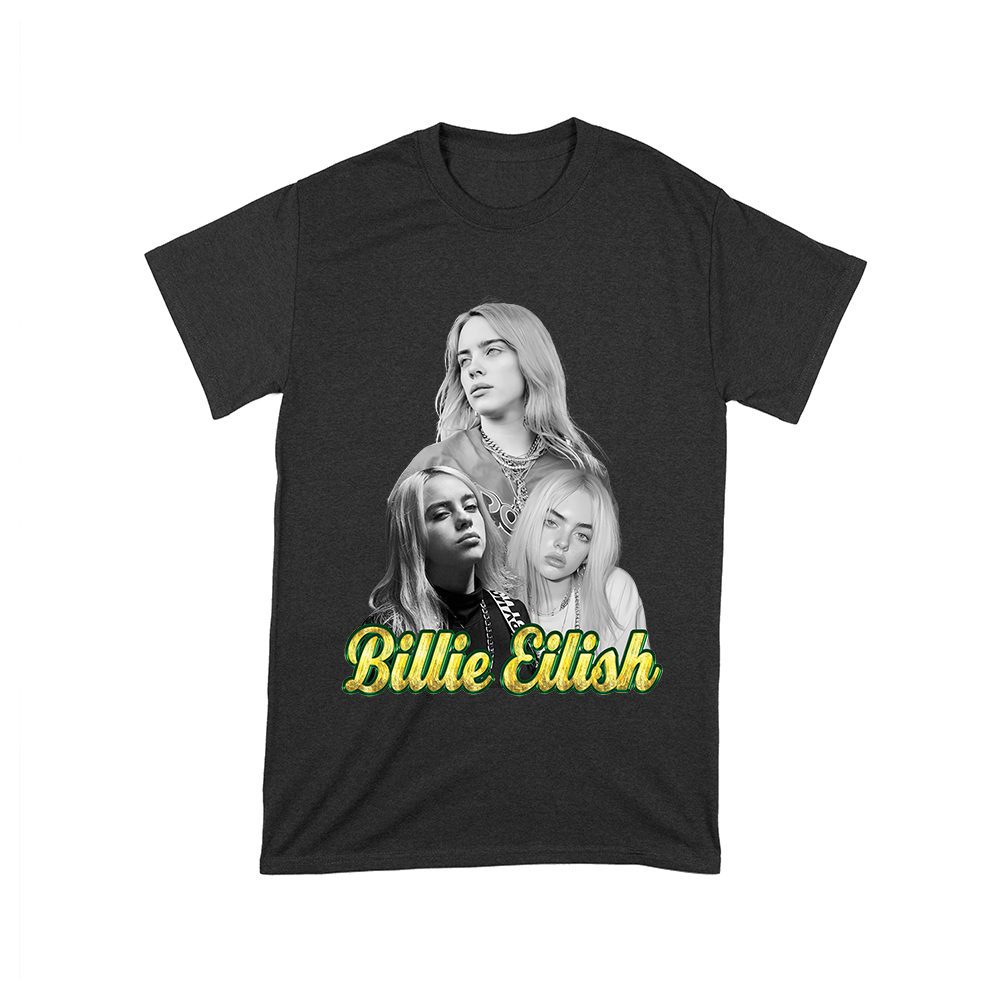 Billi-Eilish urban shirt; sitting pose tee; graffiti Billie shirt; green street style t-shirt; pop star fashion; music artist graphic tee; unique Eilish shirt; trendy fan outfit — perfect for birthdays, parties, and celebrations.