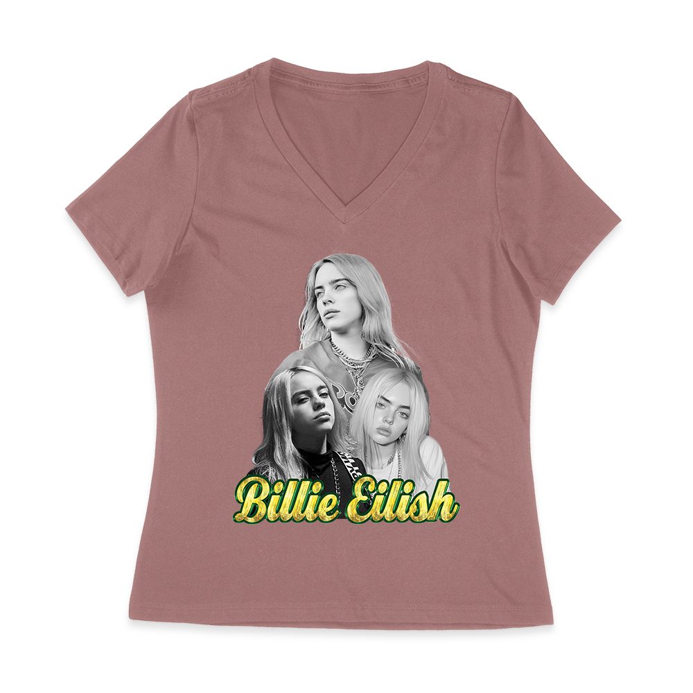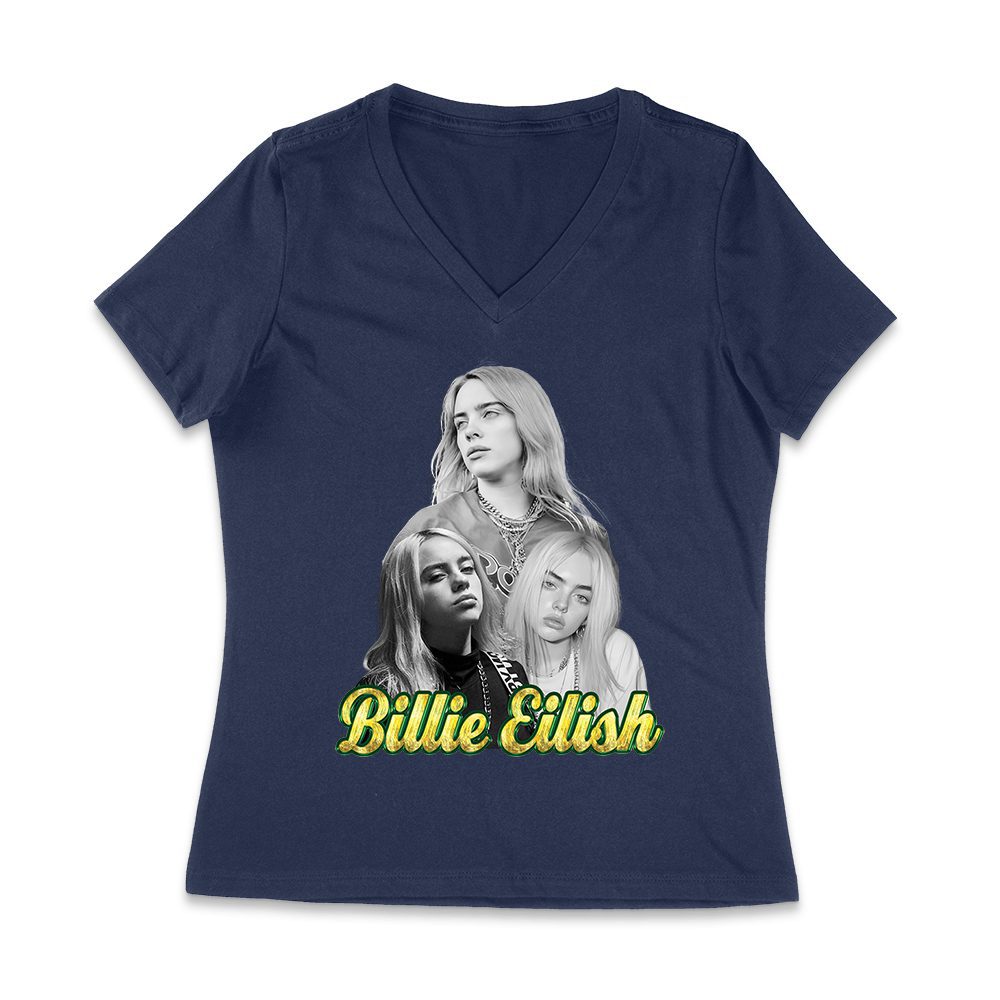 Billie Eilish Black-and-White Emotional Portrait T-Shirt for True Fans Women Jersey V-Neck