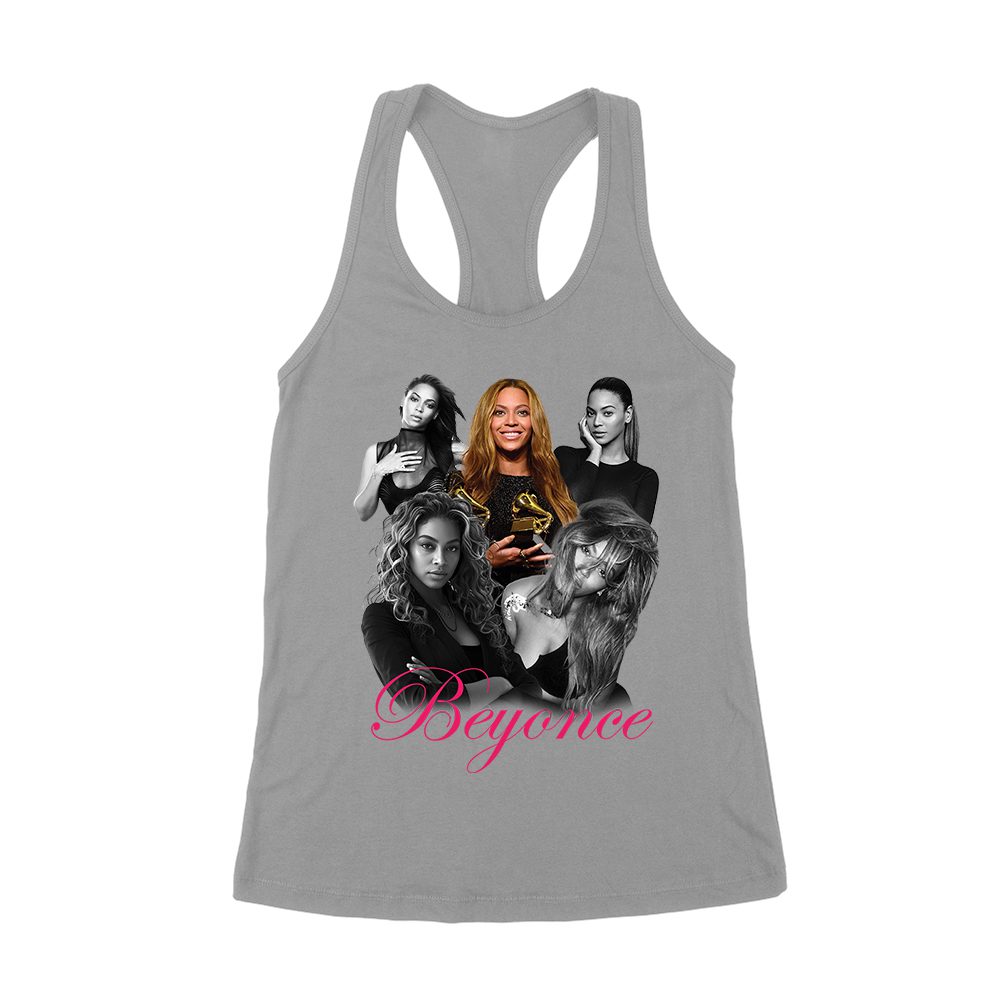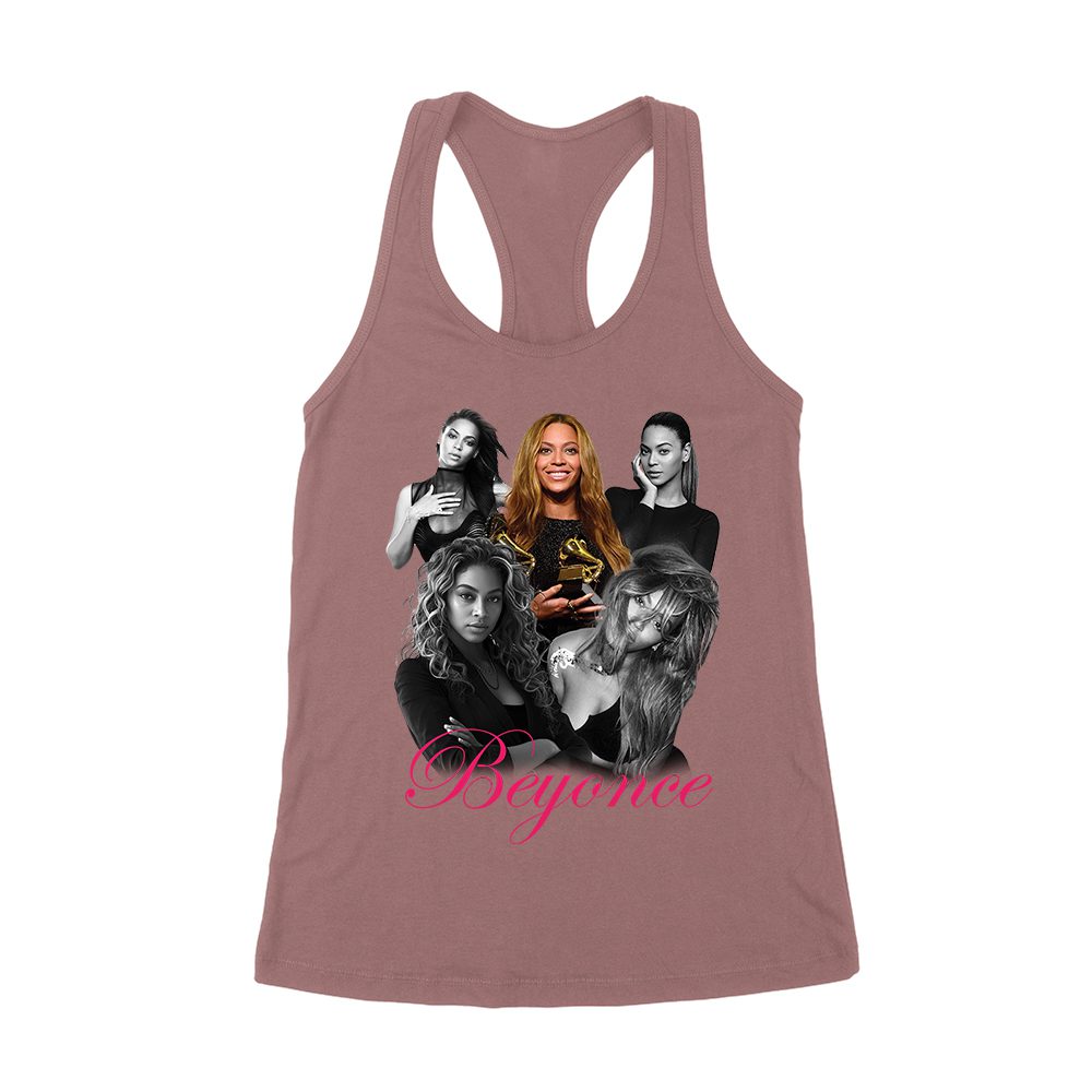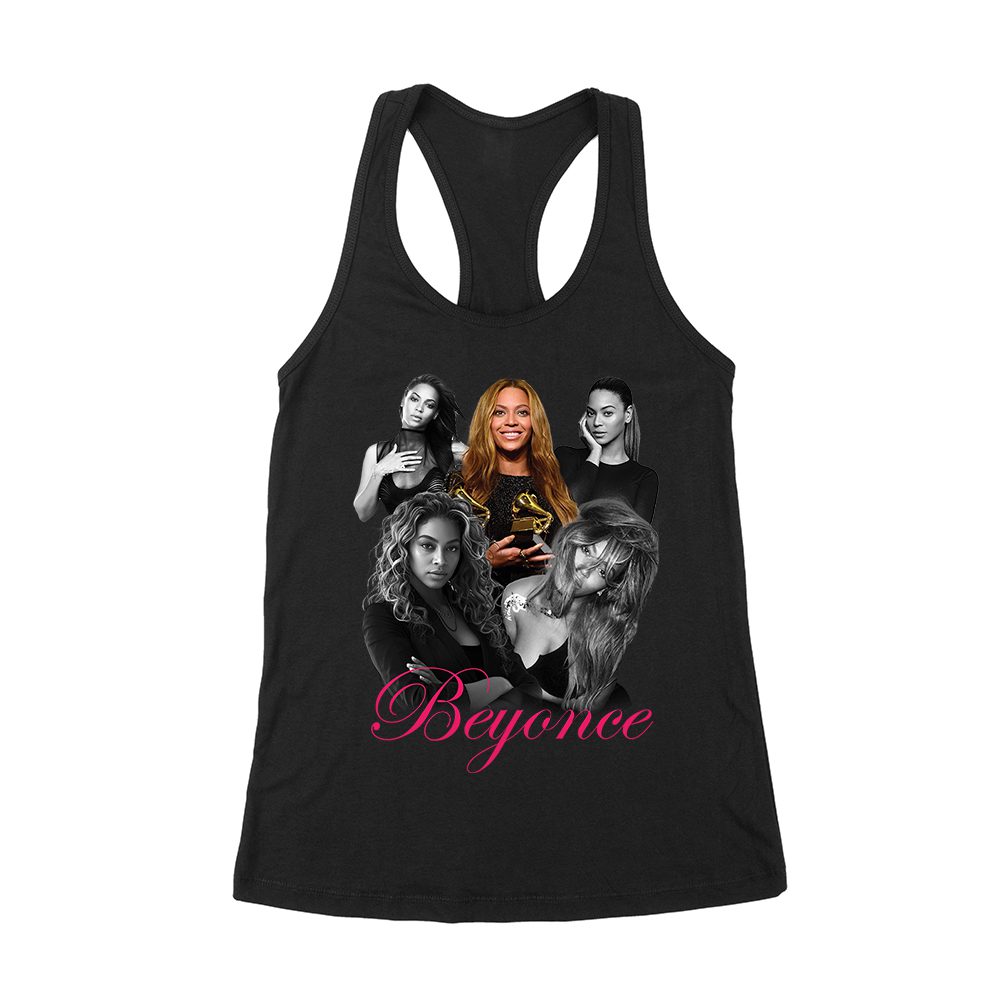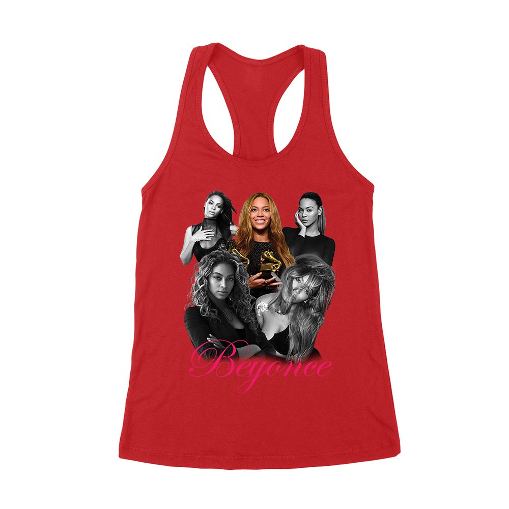 Black and White Beyonce Portrait T-Shirt with Touch of Color Contrast Women’s Racerback Tank Top