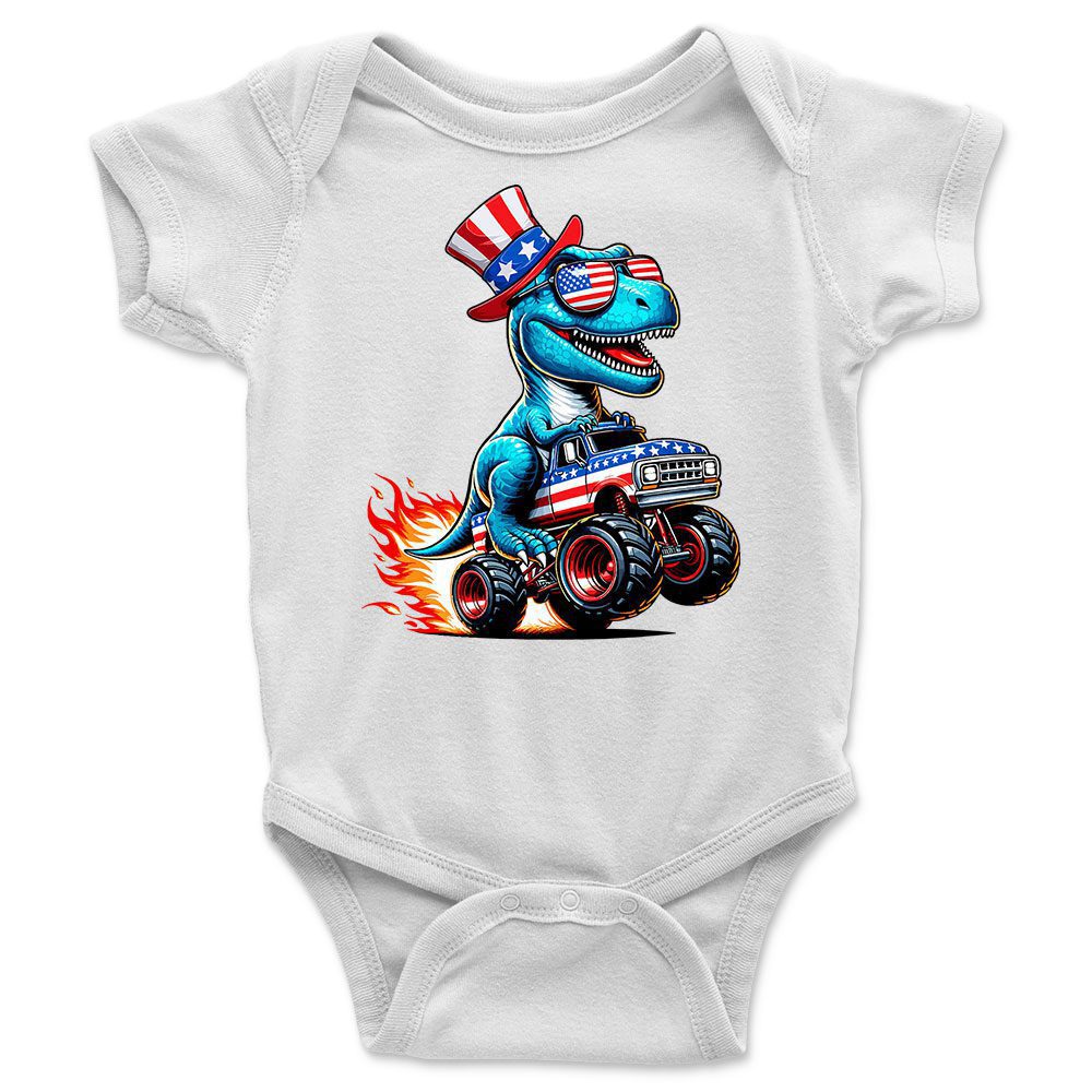 Blue T-Rex Riding Roaring Monster Truck T-Shirt ? Dynamic Graphic Tee, Unisex, Great Gift for All Ages, Eye-Catching Design, Casual Wear
