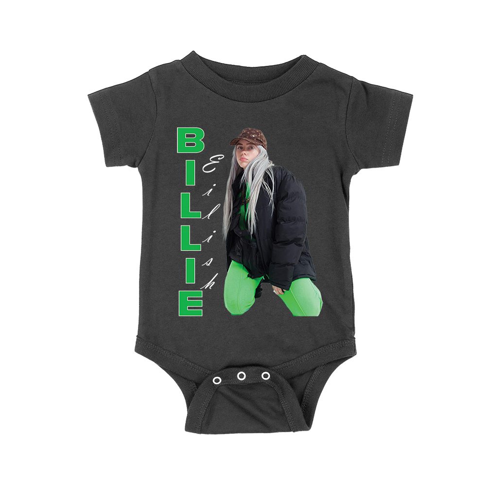 Billi-Eilish vertical name shirt; bold graphic tee; green and black pop shirt; fan favorite tee; fashion-forward Billie Eilish shirt; streetwear pop design; Billie pose t-shirt — perfect for birthdays, parties, and celebrations.