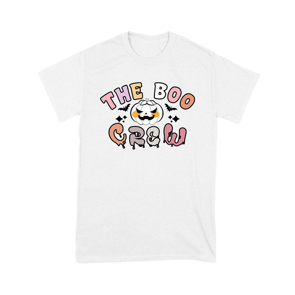 The Boo Crew Shirt, White Halloween Pumpkin Tee, Pumpkin and Bats Shirt, Halloween Tee, Boo Crew Graphic Tee, Spooky Pumpkin Apparel, Halloween Bats Shirt, Festive Boo Crew Shirt: