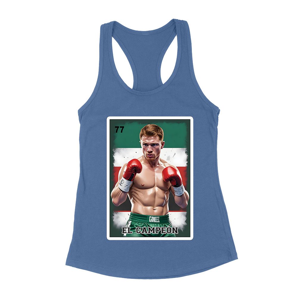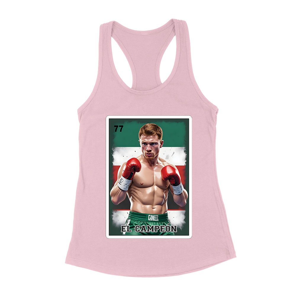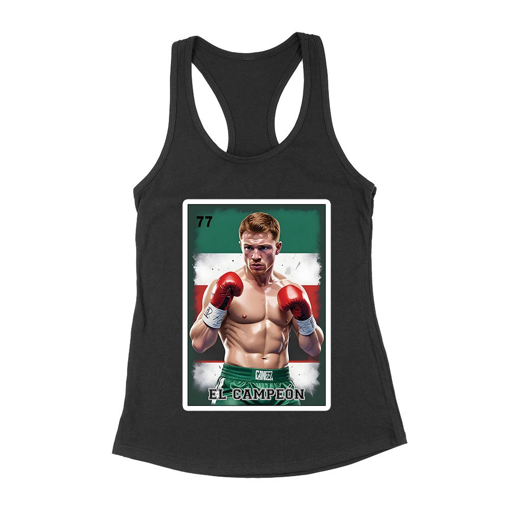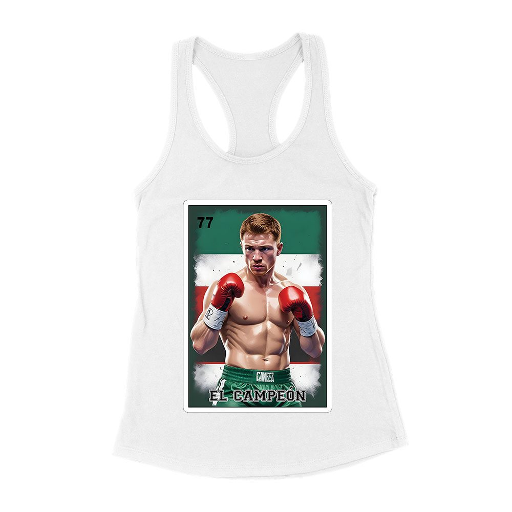 Canelo Alvarez Loteria T-Shirt – Retro Cartoon Style with Mexican Flag Colors Women’s Racerback Tank Top