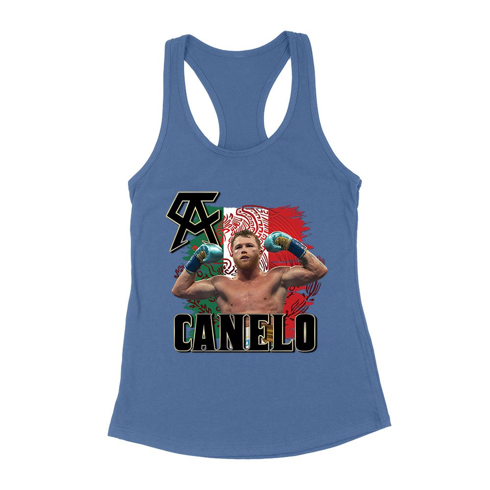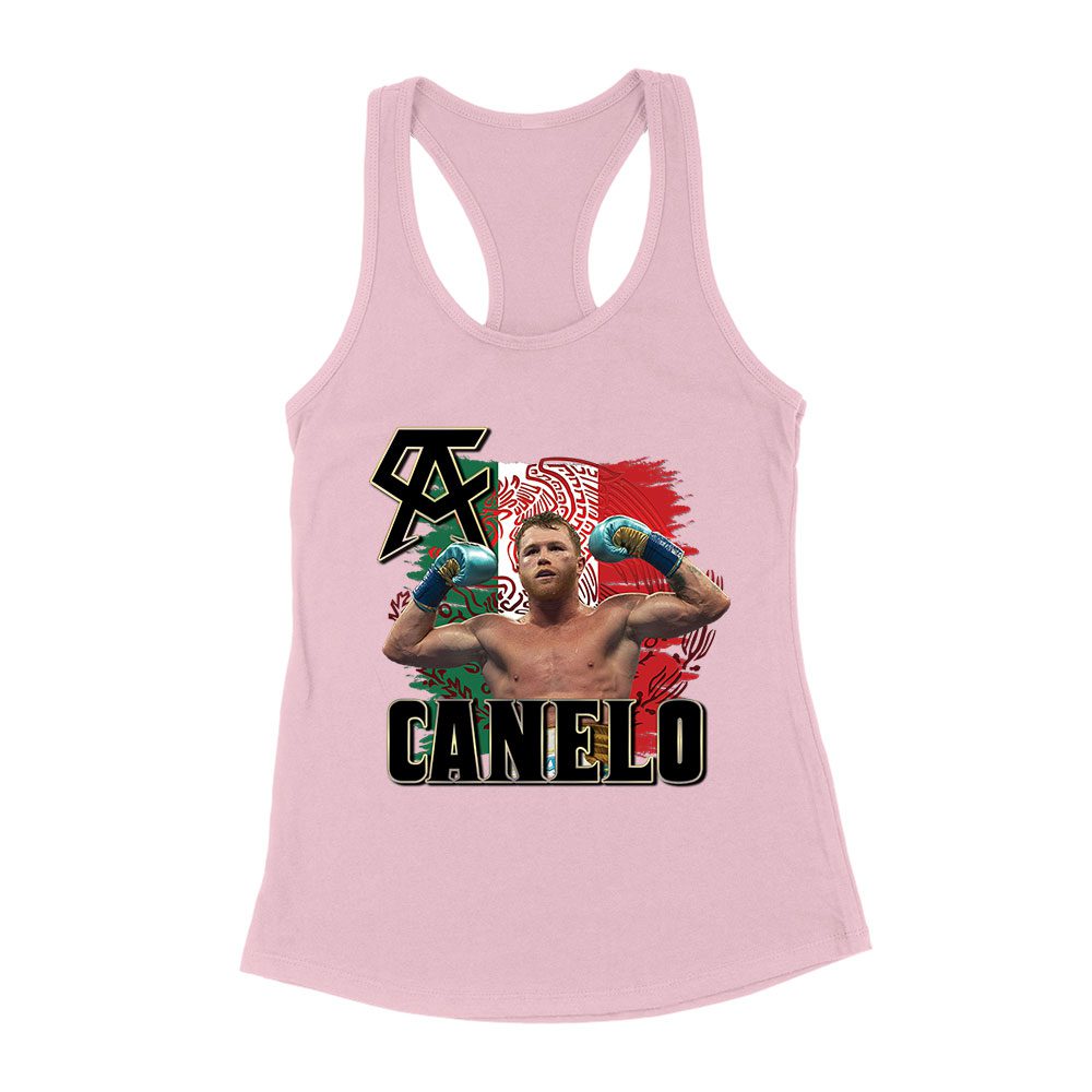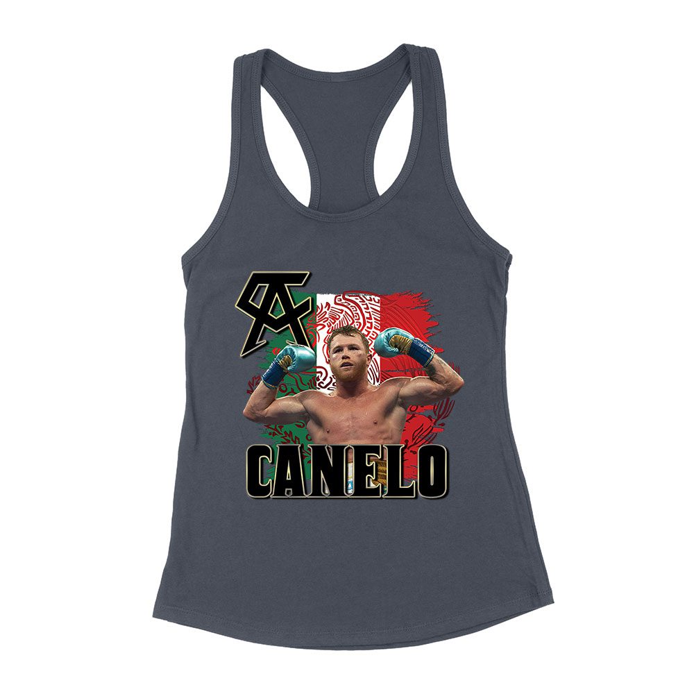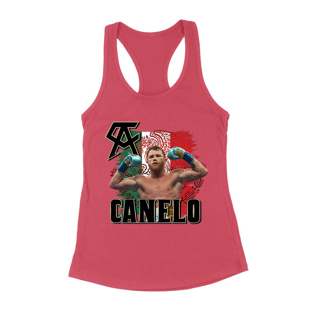Canelo Alvarez Power T-Shirt – Iconic Image with Mexican Flag Background Women’s Racerback Tank Top