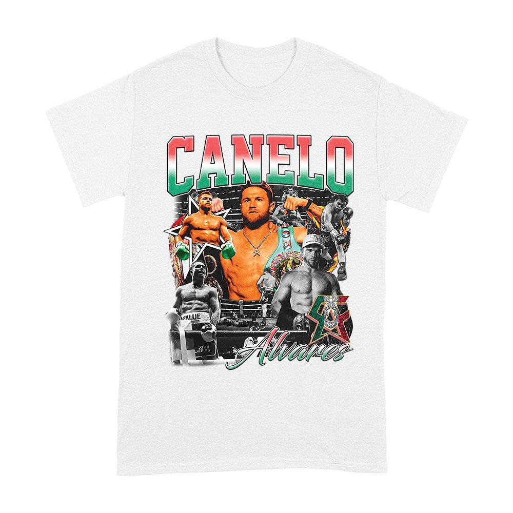 Canelo ?lvarez T-shirt, boxing legend shirt, Canelo image collage, boxing art apparel, Canelo ?lvarez fan gift, sports memorabilia shirt, Canelo boxing artwork, ?lvarez boxing icon tee: