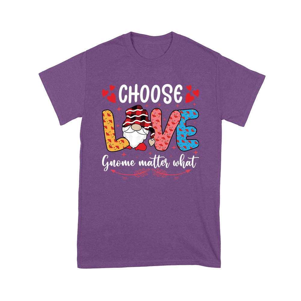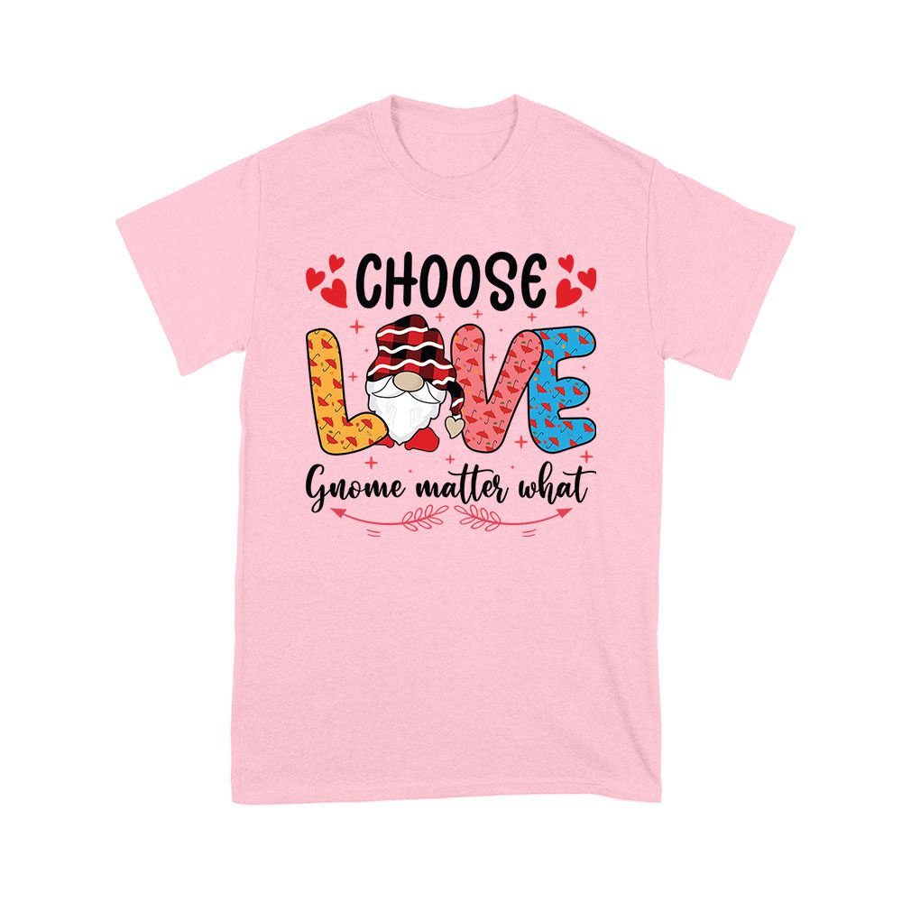 Choose Love Gnome Matter What T-Shirt – Cute Valentine’s Day Shirt with Adorable Gnome Design for Women, Men, and Kids