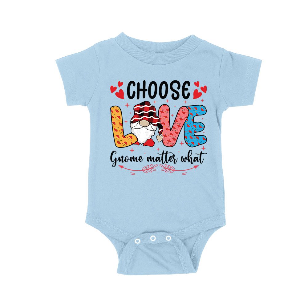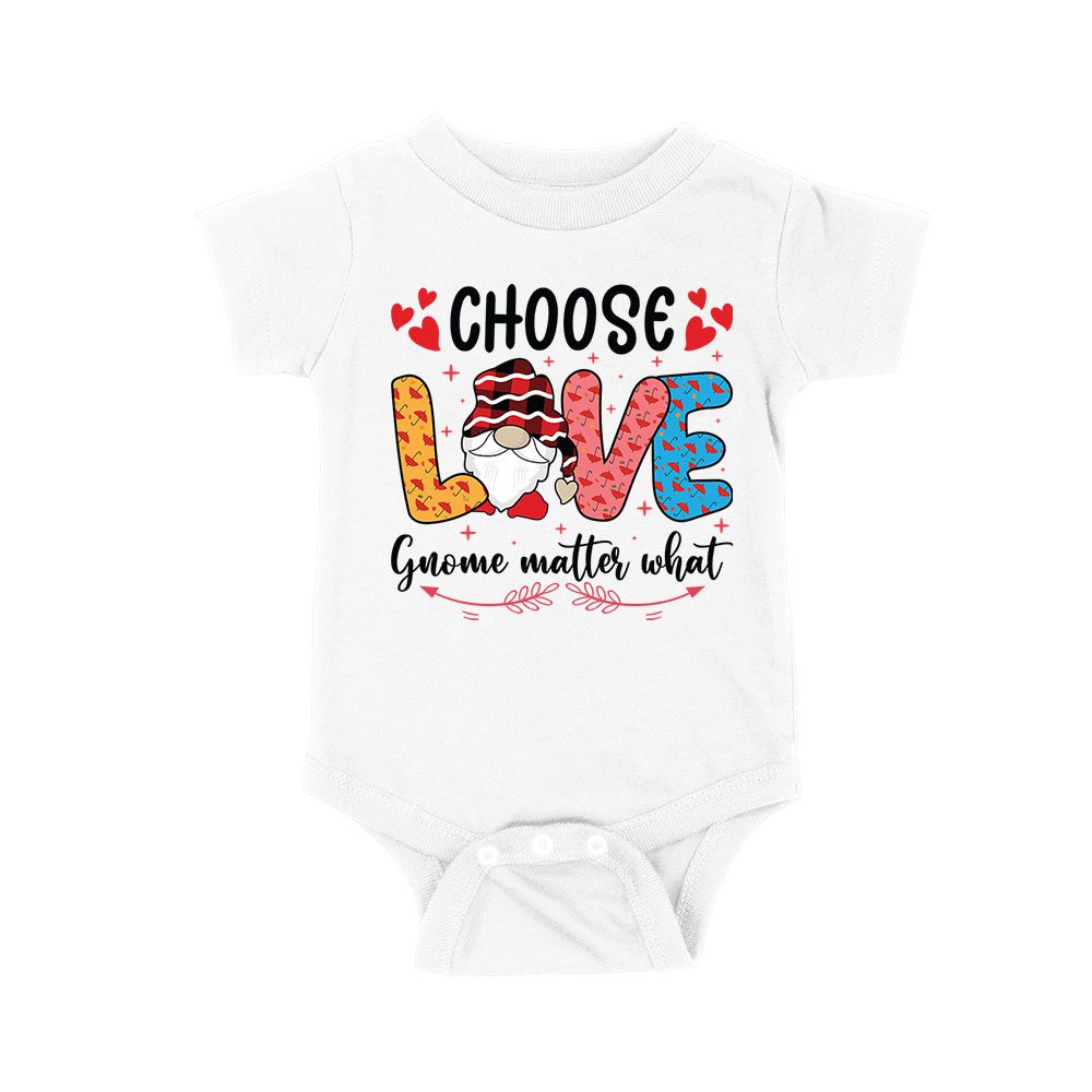 Choose Love Gnome Matter What T-Shirt – Cute Valentine’s Day Shirt with Adorable Gnome Design for Women, Men, and Kids Unisex Baby Jersey