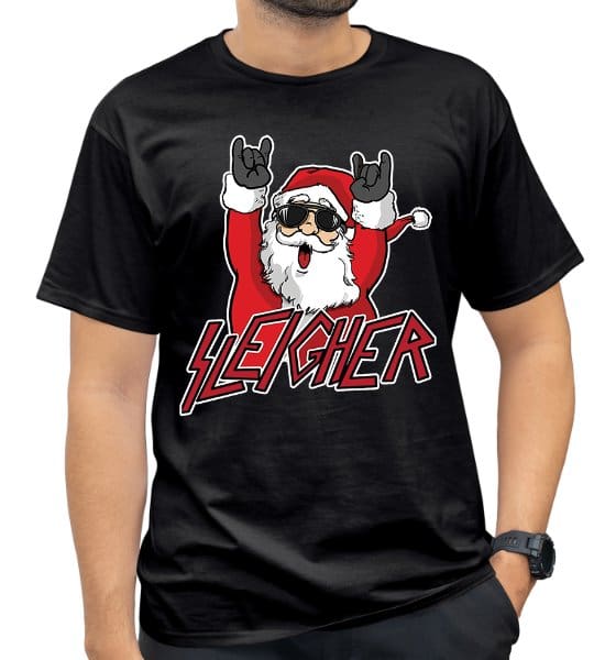 Christmas Sleigher Santa Rock T-Shirt – Cool Xmas Tee for Men, Women, Kids & Rocker Fans Unisex Adult