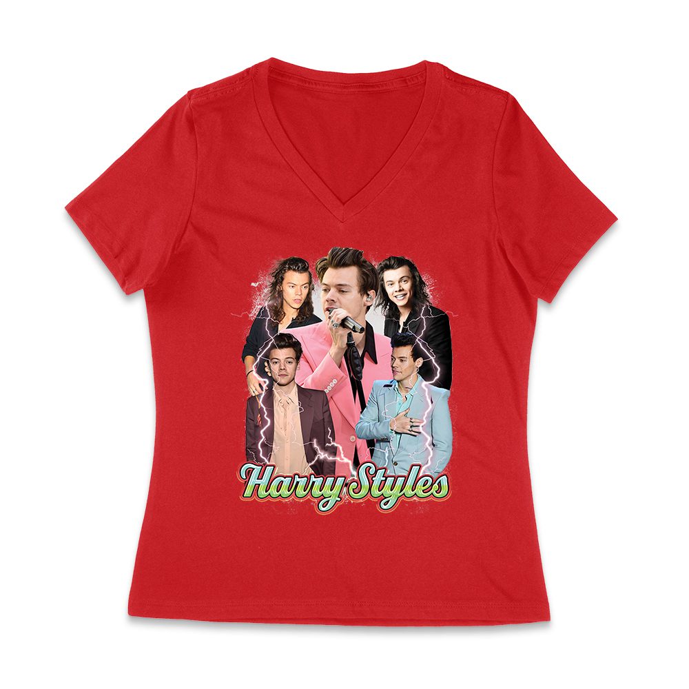 Be the first to review “Colorful Lightning Collage Hary-Styls Graphic Tee Featuring Iconic Poses Women Jersey V-Neck”