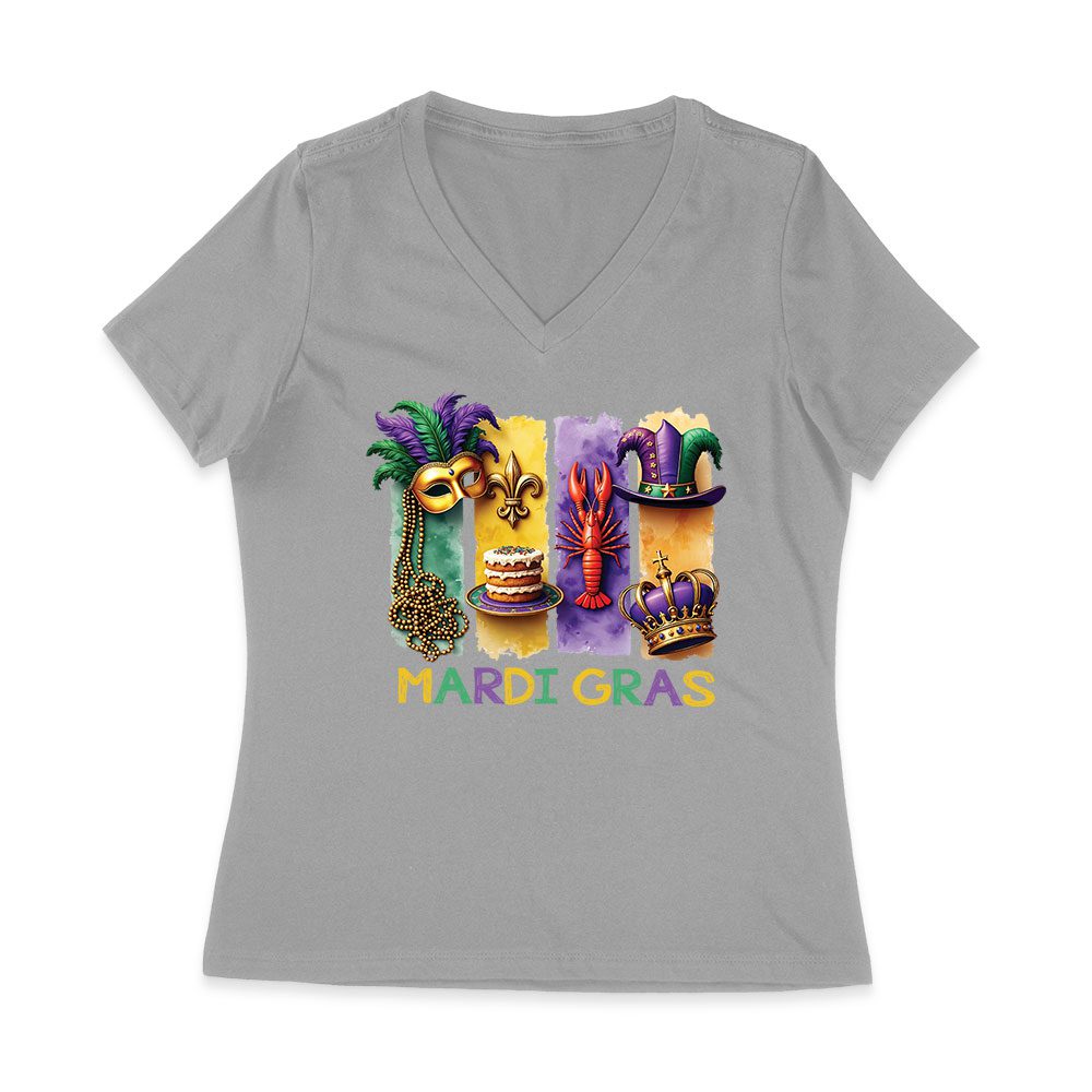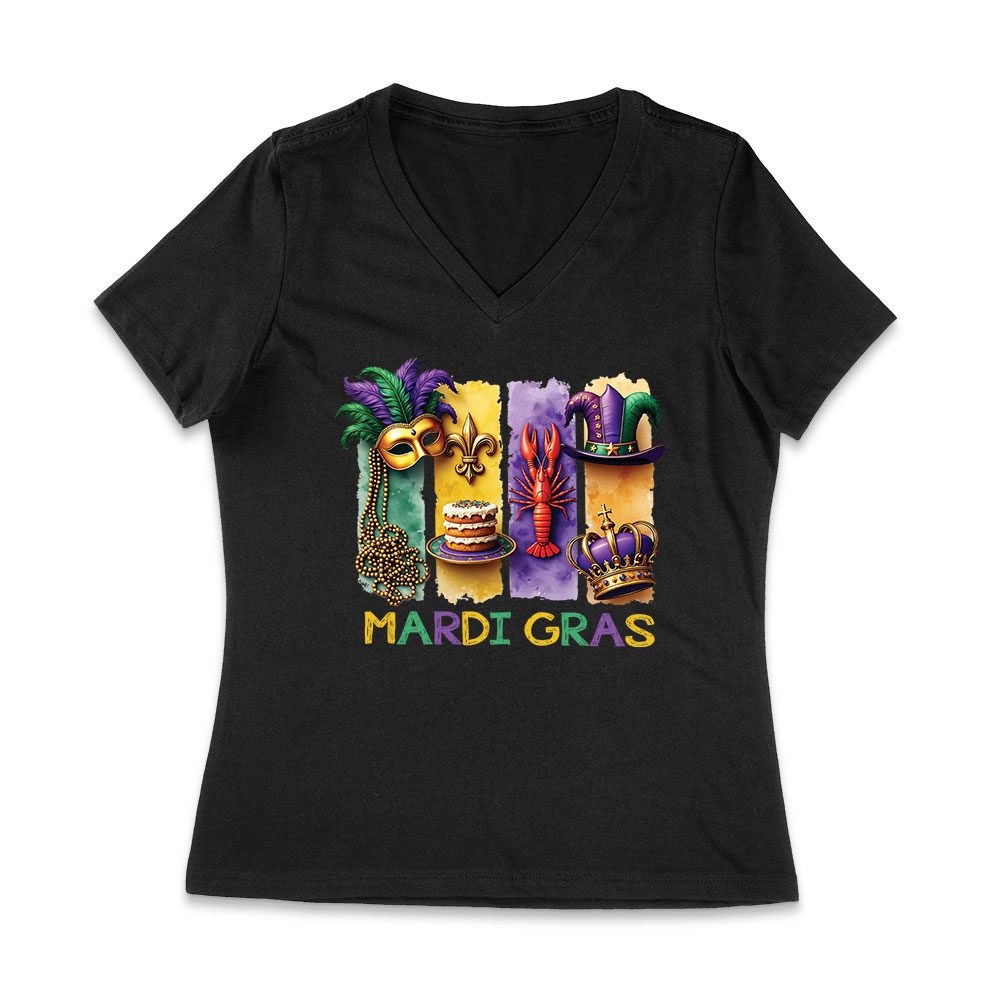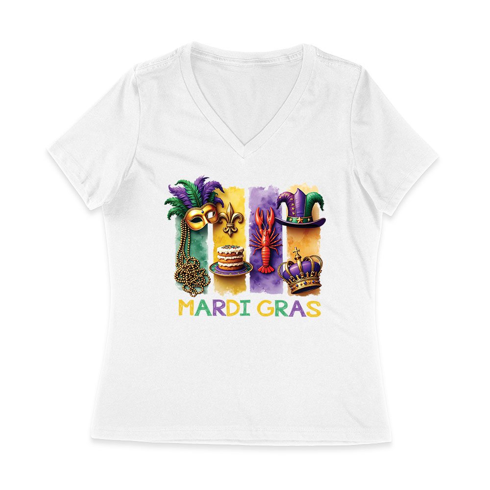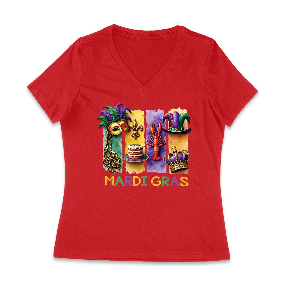 Colorful Mardi Gras T-Shirt – Bold Carnival Design for Fun Celebrations, Perfect for Parades, Parties & Festive Occasions Women Jersey V-Neck