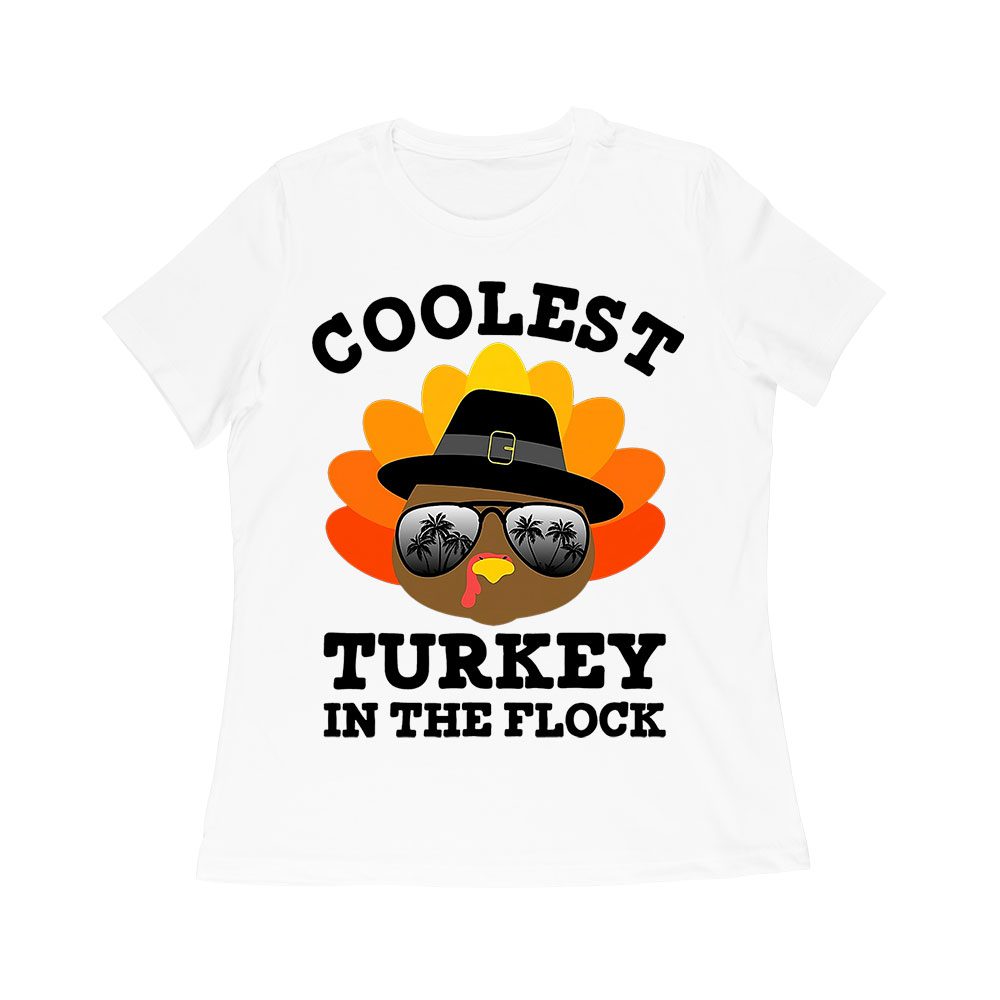 Coolest Turkey in the Flock Thanksgiving T-Shirt – Fun Holiday Wear – Perfect for Turkey Lovers – Stand Out in Style Women Relaxed