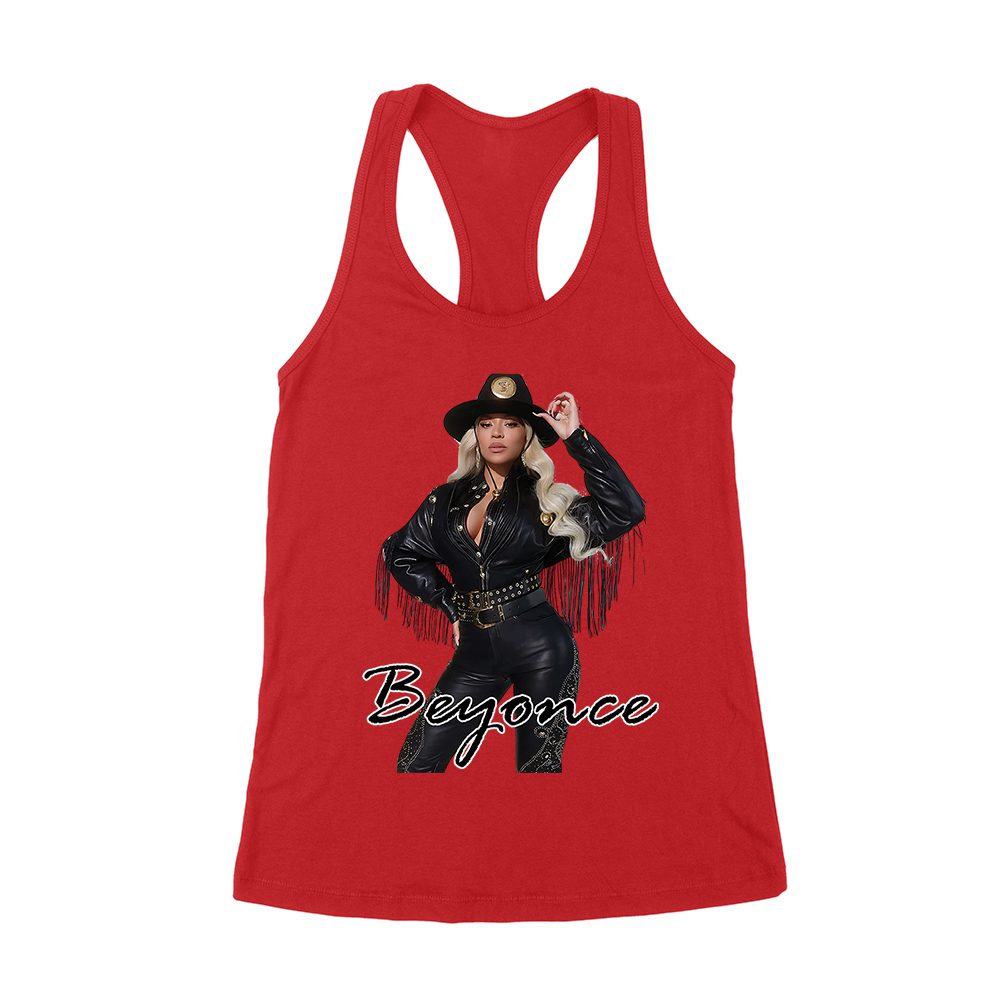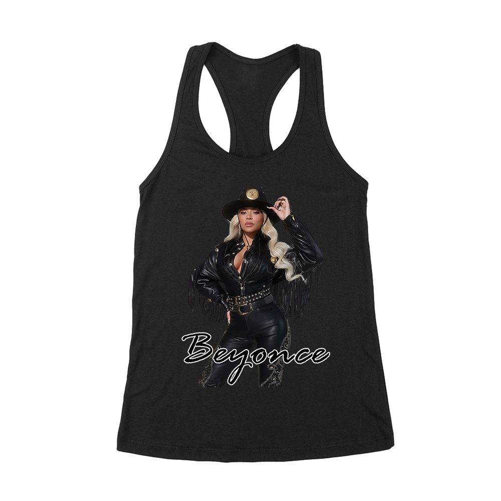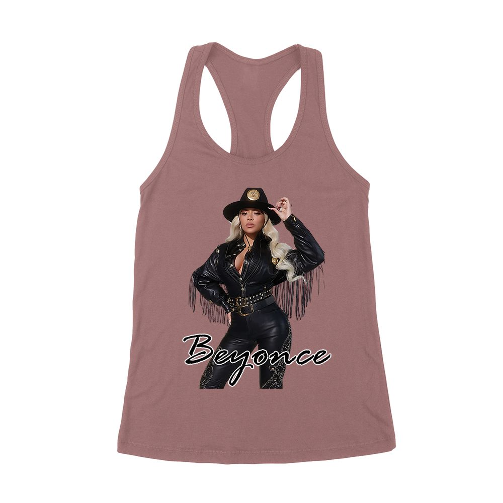 Cowgirl Hat and Fringe Jacket Beyonce Graphic Tee with Signature Style Women’s Racerback Tank Top