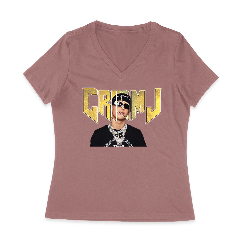 Cris-MJ Close-Up with Sunglasses and Gold Chains Women Jersey V-Neck