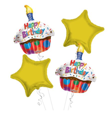 Cupcake Happy Birthday Balloon Bouquet 4pc