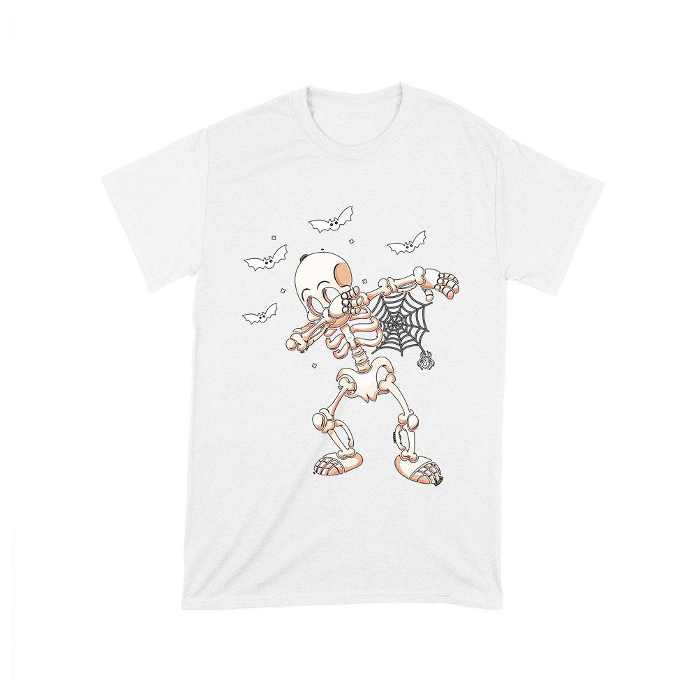 Dabbing Skeleton with Spider Web and Bats – Fun Halloween T-Shirt