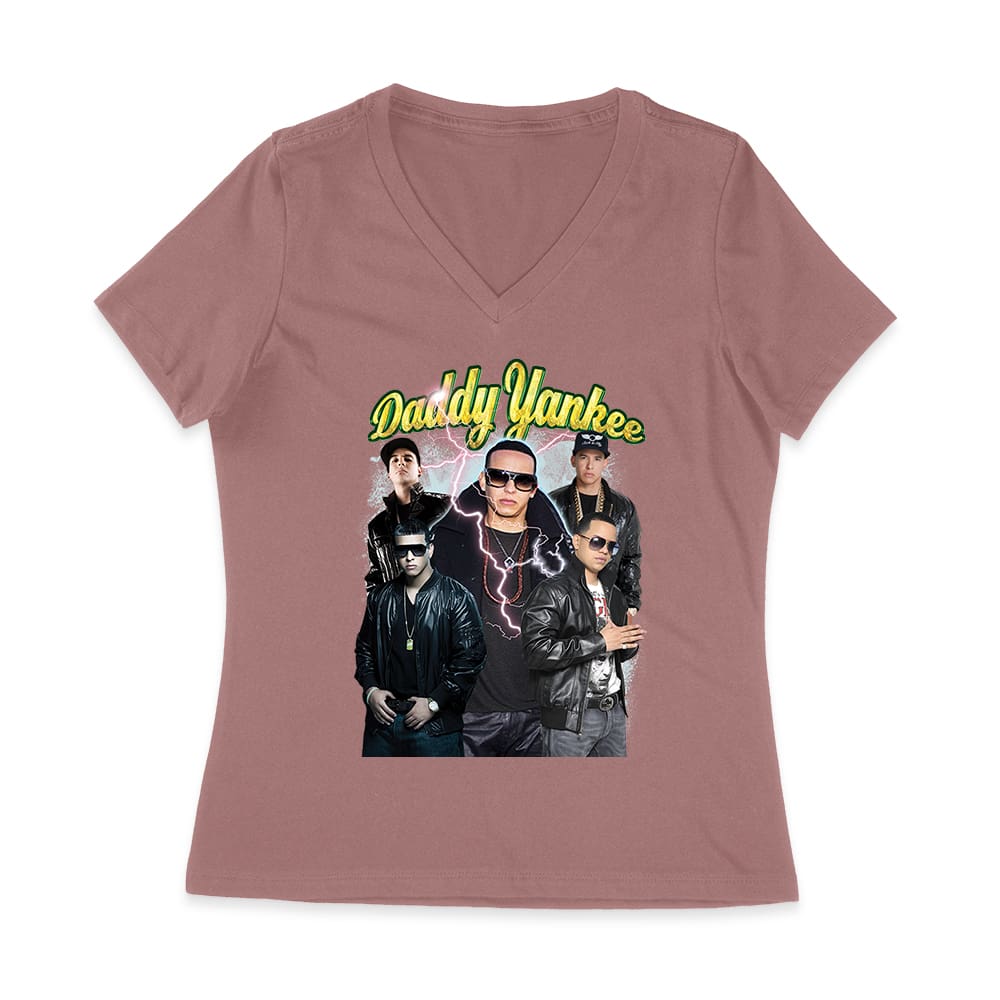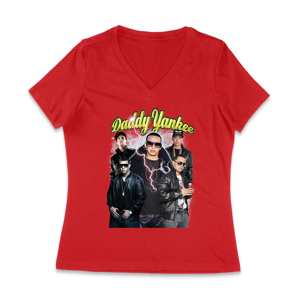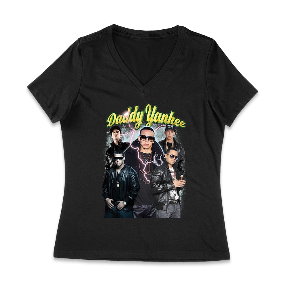 Daddy Yankee Classic Portrait T-Shirt with Hat and Reflective Glow Women Jersey V-Neck