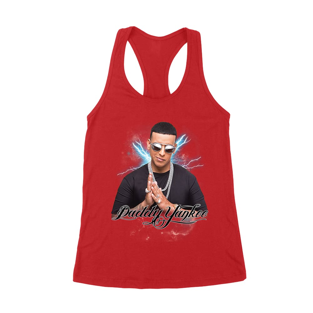 Daddy Yankee Retro Laser Energy Design T-Shirt with Neon Highlights Women’s Racerback Tank Top
