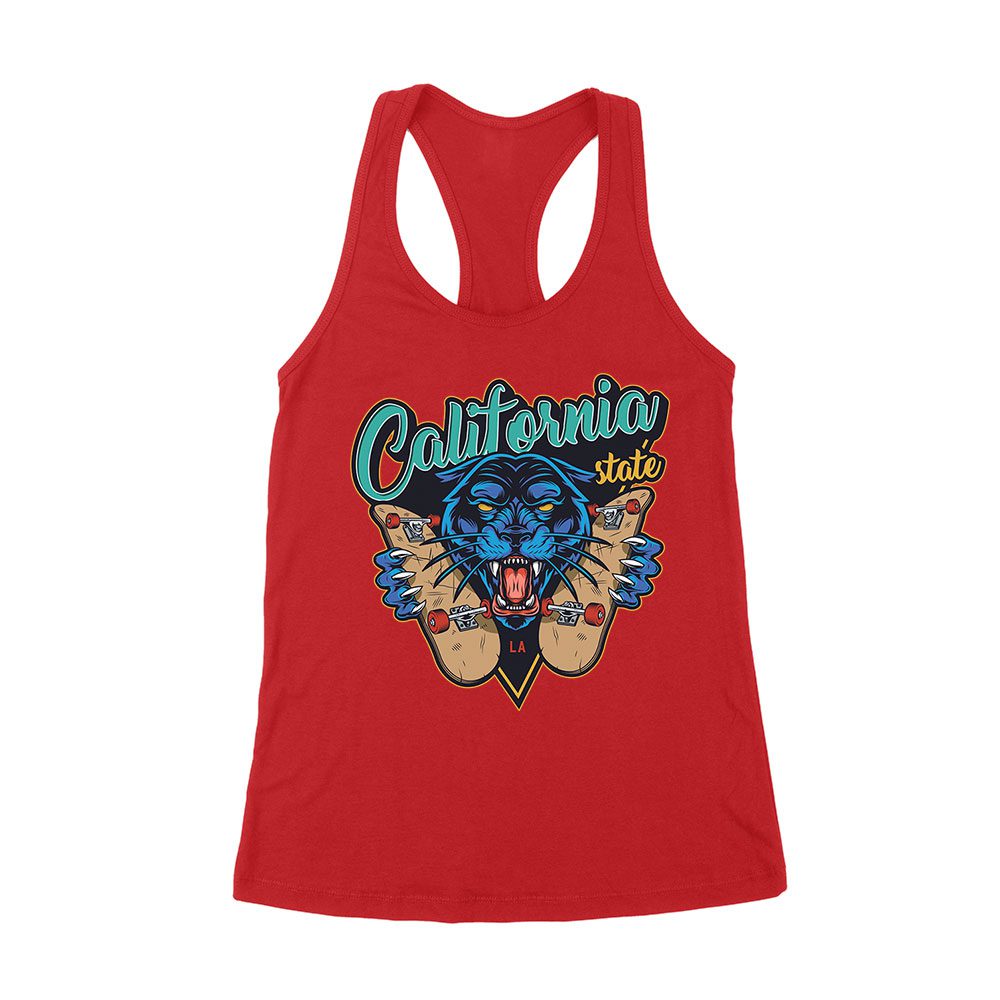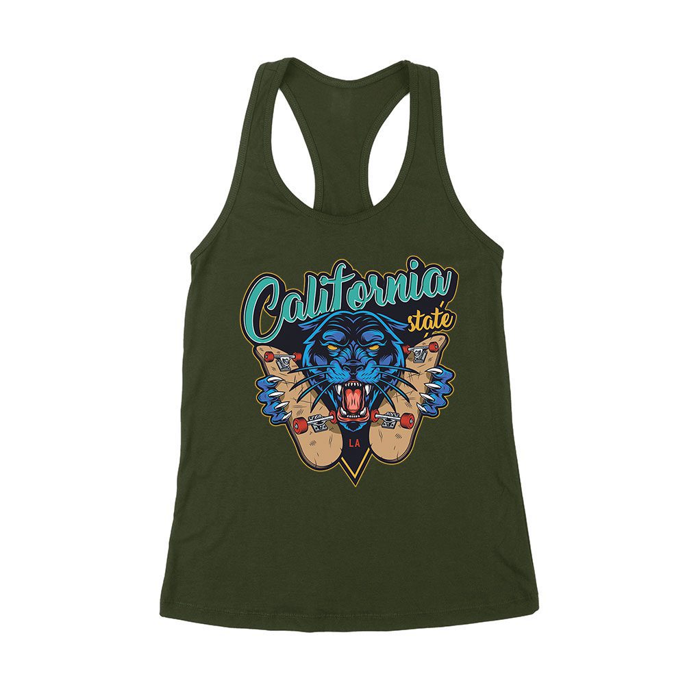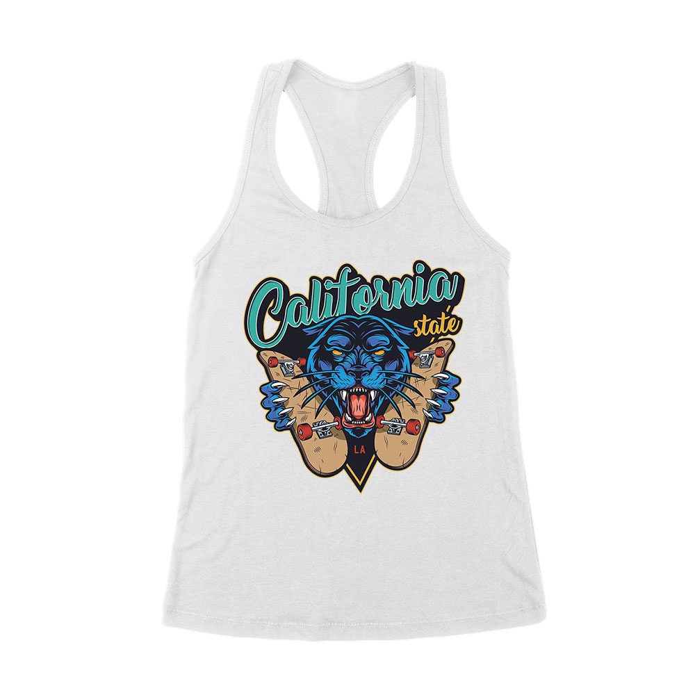 Dynamic Tiger Skateboarding California Graphic Tee – Vibrant Design for Urban Skate Lovers Women’s Racerback Tank Top