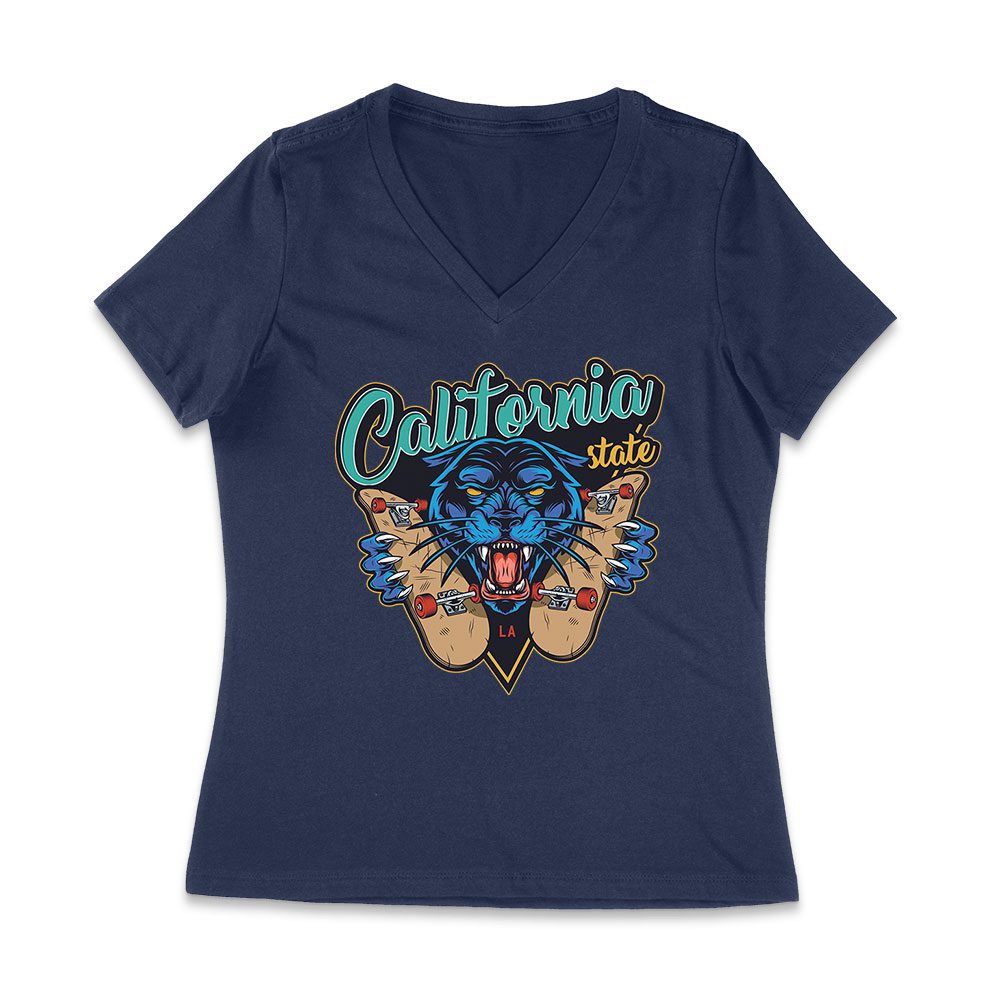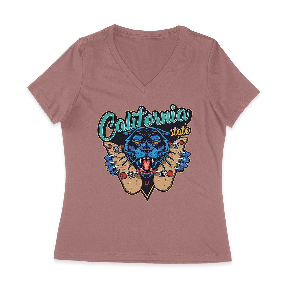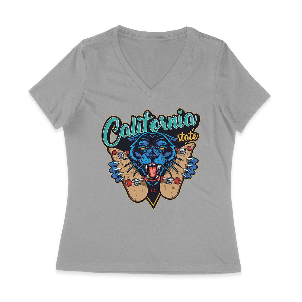 Dynamic Tiger Skateboarding California Graphic Tee – Vibrant Design for Urban Skate Lovers Women Jersey V-Neck