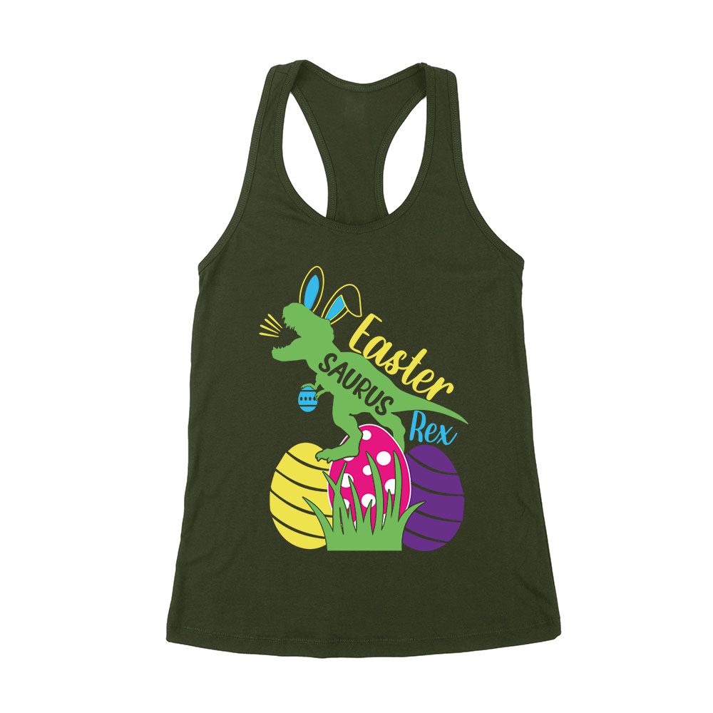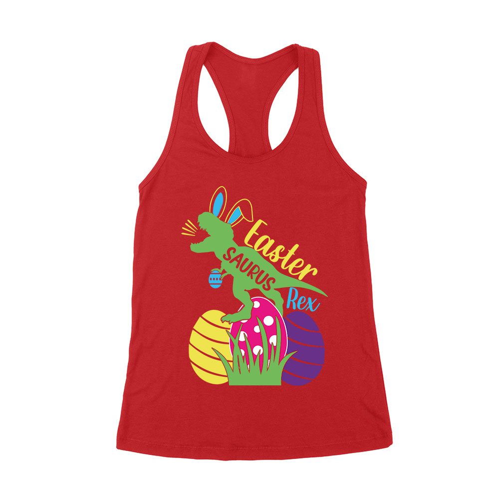 Easter Saurus Rex T-Shirt – Funny Dinosaur Easter Egg Hunt Outfit for Kids & Boys Women’s Racerback Tank Top
