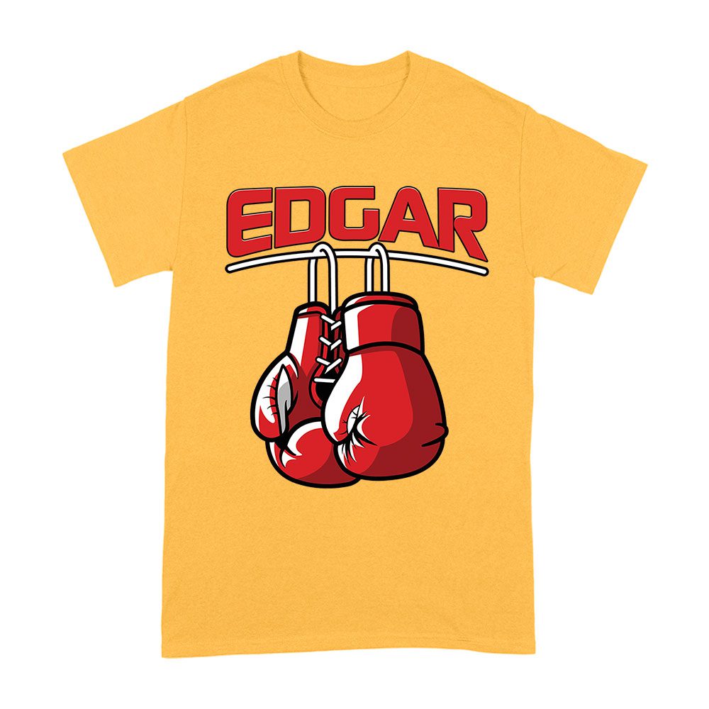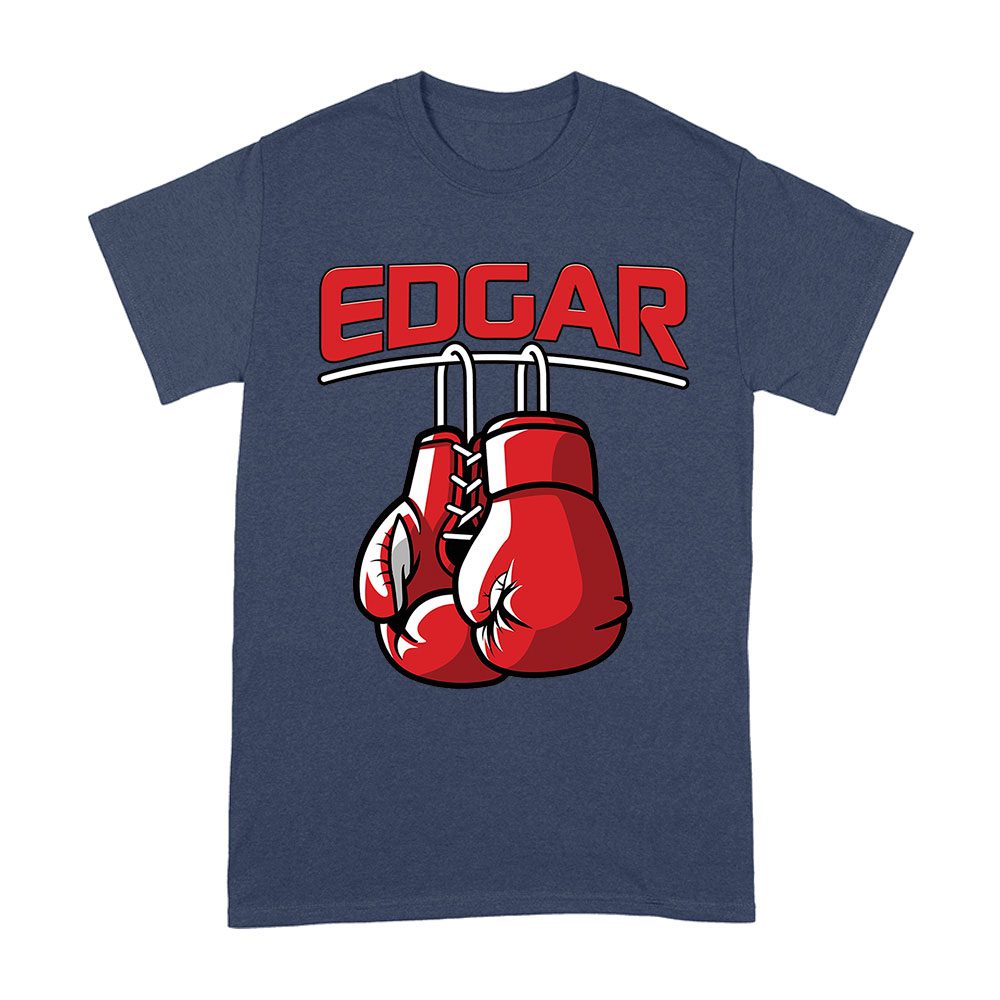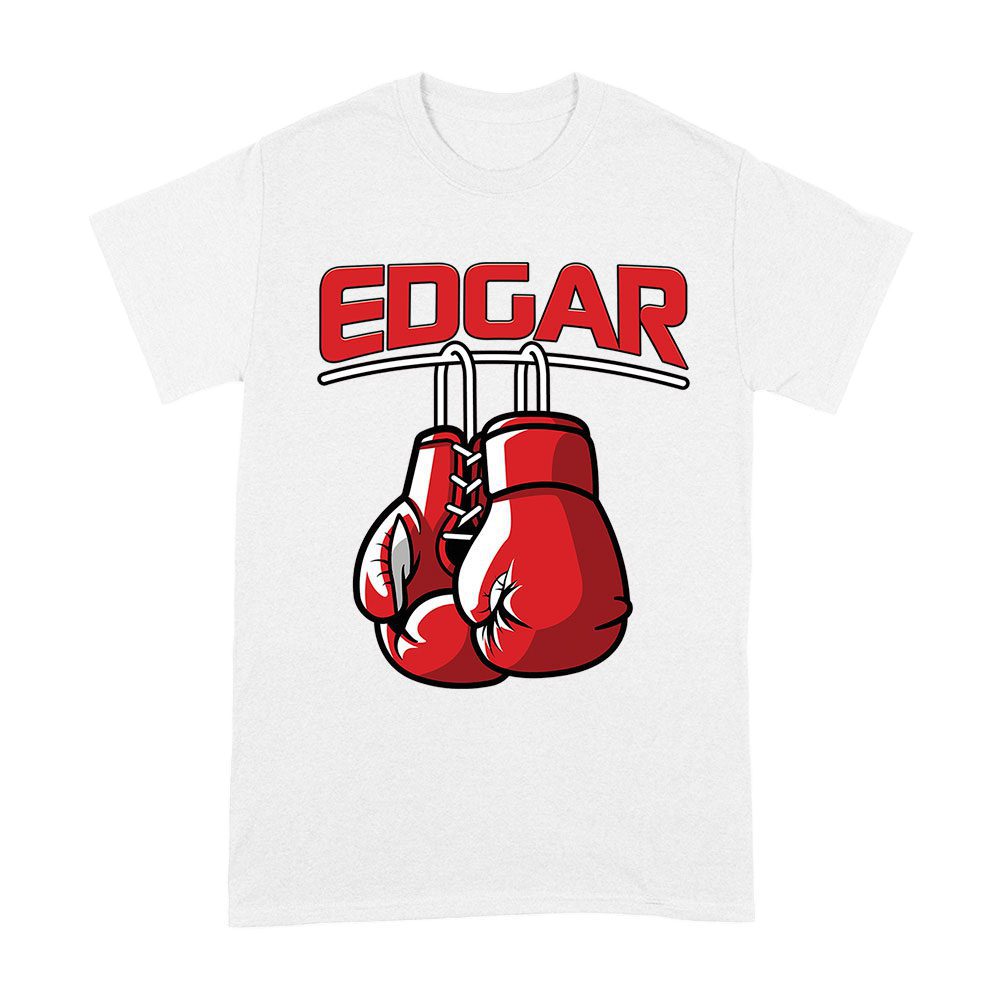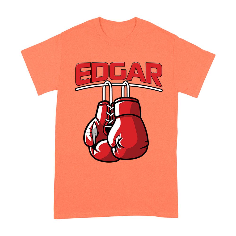 Edgar boxing gloves t-shirt, red boxing gloves design, boxing fighter tee, Edgar fan apparel, boxing enthusiast shirt, bold fighter gear, Edgar supporter t-shirt, red gloves boxing shirt: