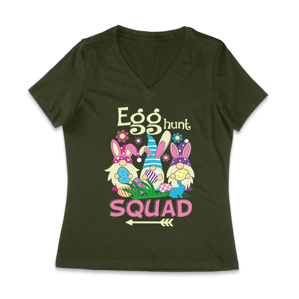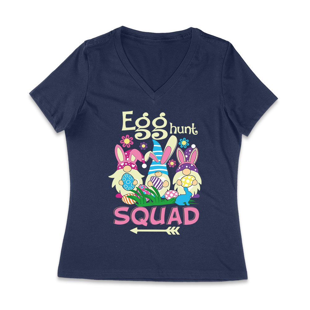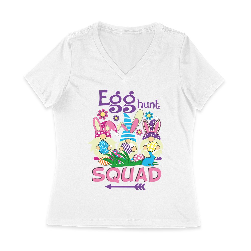 Egg Hunt Squad T-Shirt – Fun Easter Bunny & Colorful Eggs Team Outfit for Kids & Adults Women Jersey V-Neck