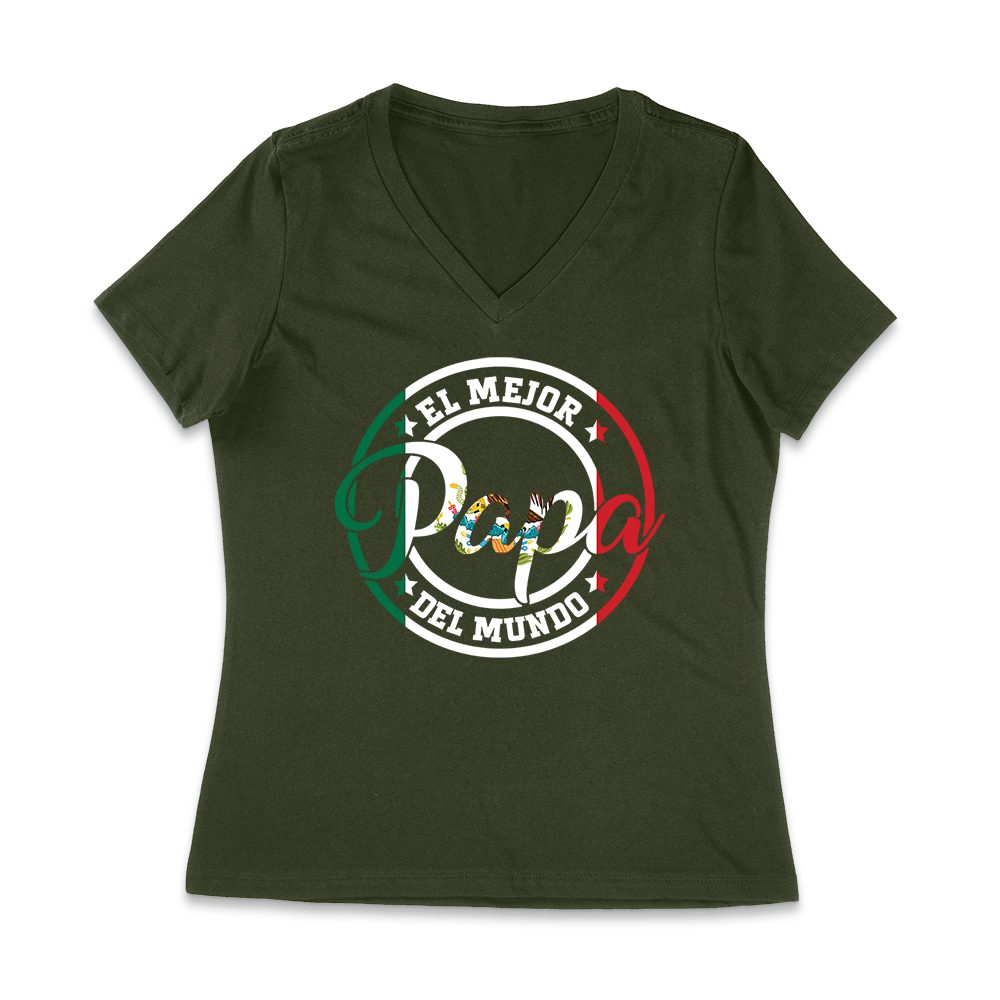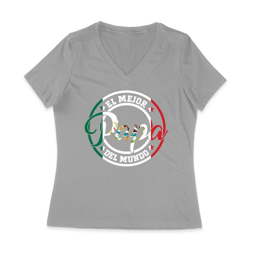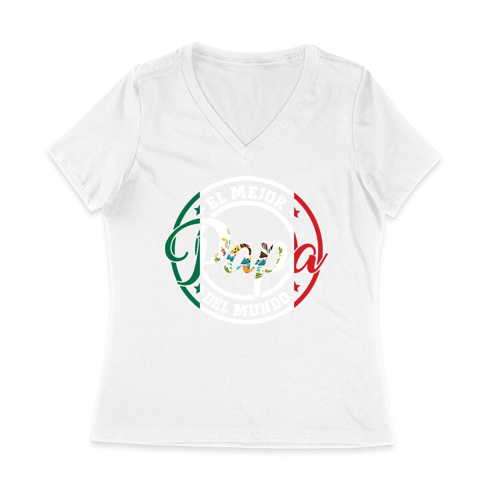 El-Mejor-Papa-Del-Mundo Mexican Father’s-Day T-Shirt Gift for Dad Women Jersey V-Neck