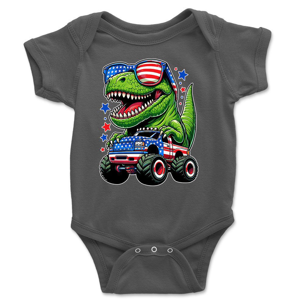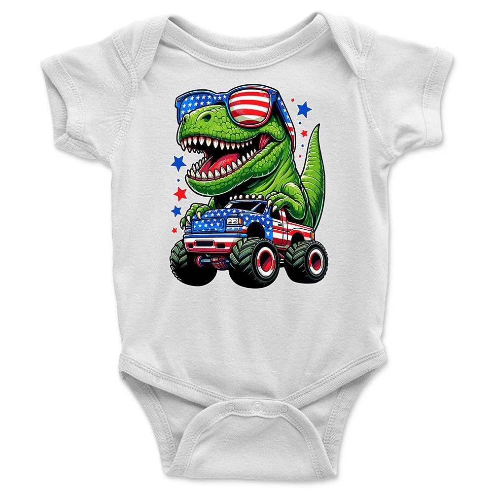 Epic Big Green T-Rex Roaring on American Monster Truck T-Shirt ? Dynamic Graphic Tee, Unisex, Perfect Gift for All Ages, Standout Design, Casual Fun