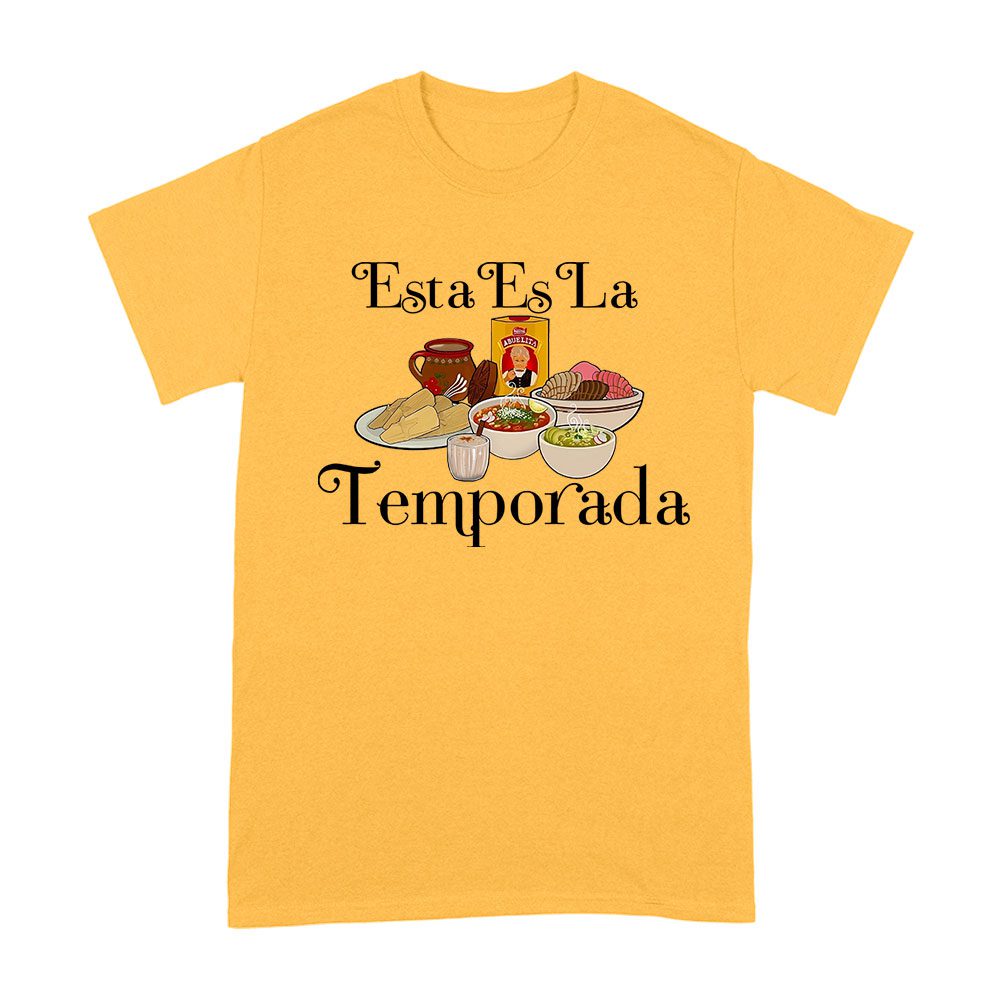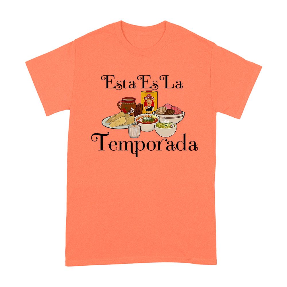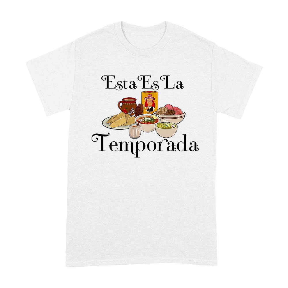 esta es la temporada, foods on the table, Thanksgiving shirt, holiday wear, festive t-shirt, food lover gift, unique holiday tee, comfortable fit, seasonal fashion, fall style, foodie apparel, Thanksgiving feast, family gathering: