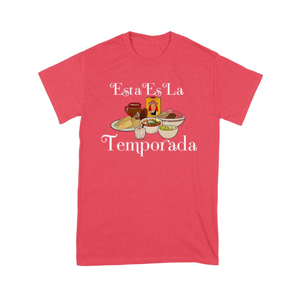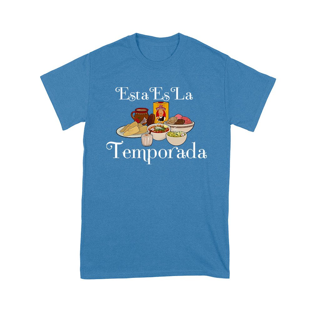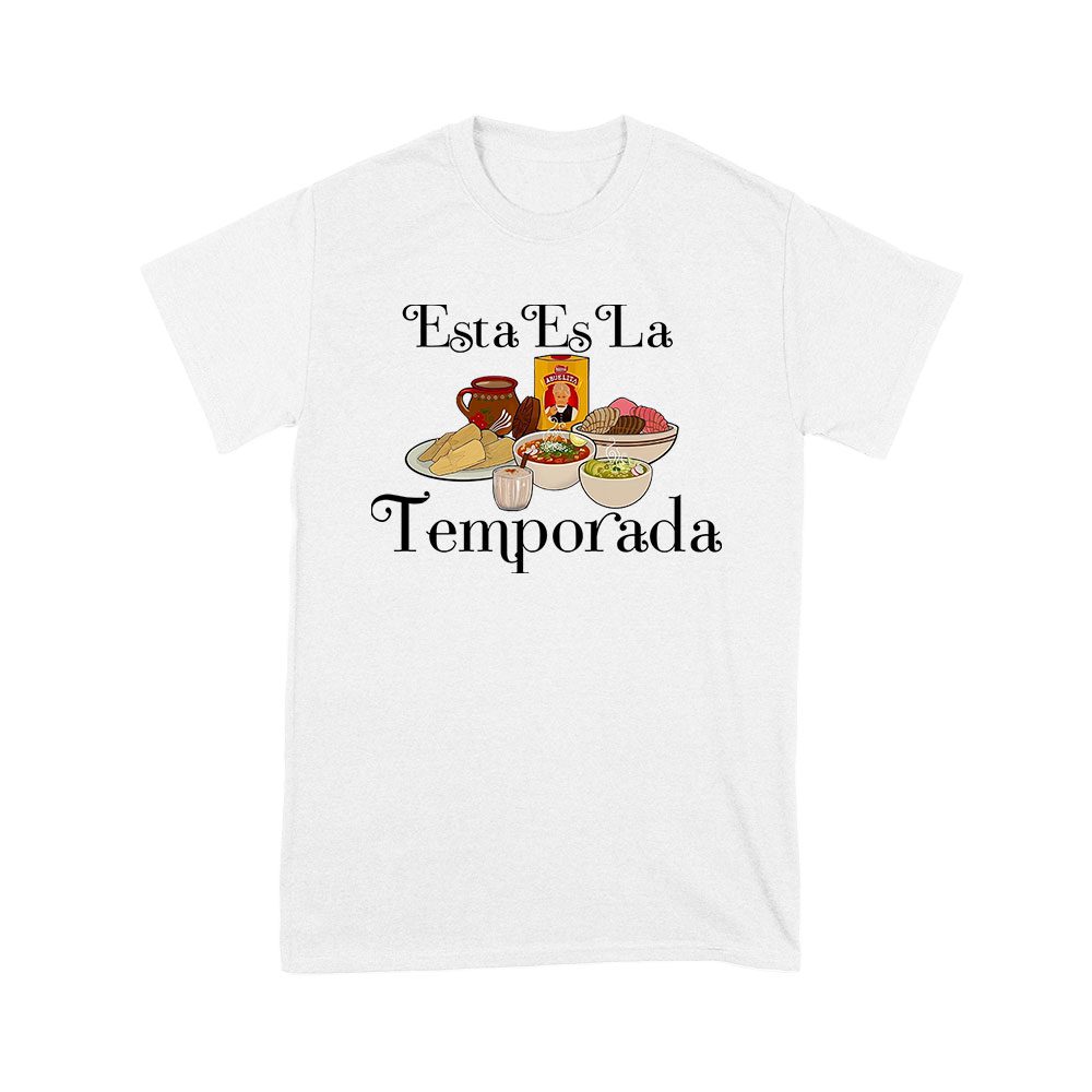 esta es la temporada, foods on the table, Thanksgiving shirt, holiday wear, festive t-shirt, food lover gift, unique holiday tee, comfortable fit, seasonal fashion, fall style, foodie apparel, Thanksgiving feast, family gathering: