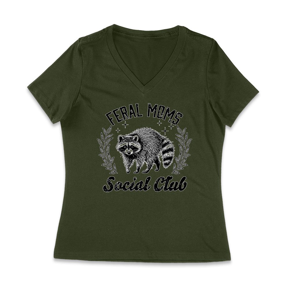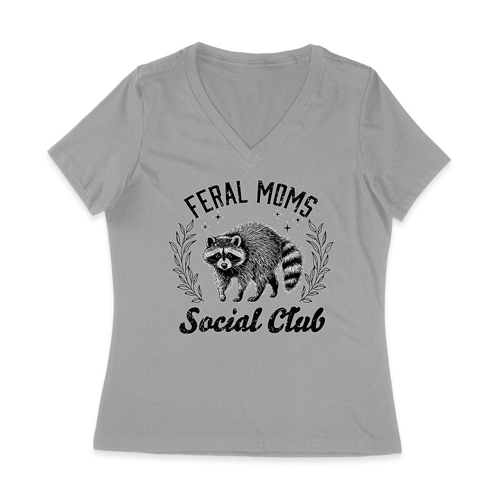 Feral Mom’s Social Club T-Shirt – Funny Mom Tee – Edgy Motherhood Humor Shirt – Sarcastic Gift Women Jersey V-Neck