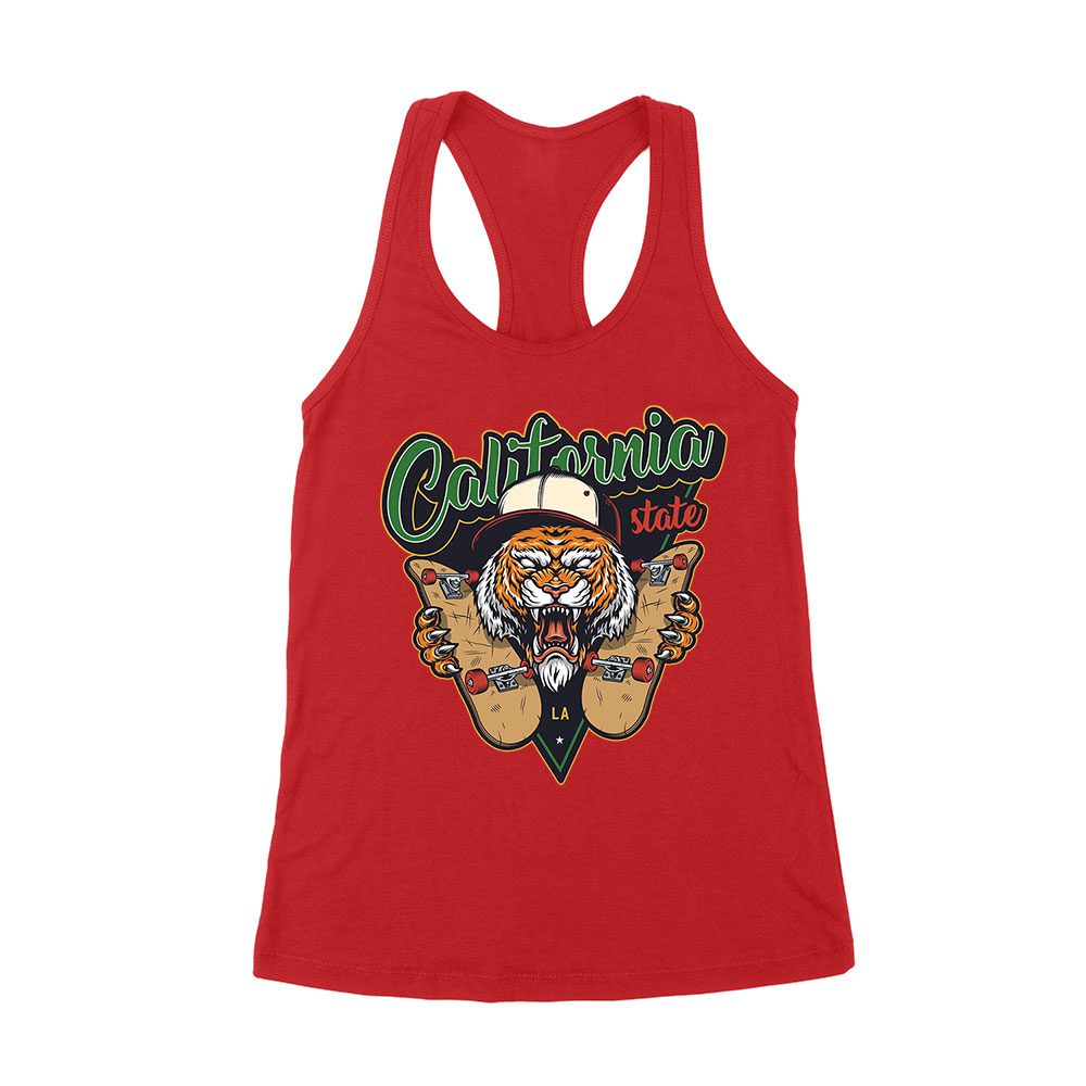 Fierce California Tiger Skateboarding T-Shirt – Bold Graphic Design for Skate Fans Women’s Racerback Tank Top