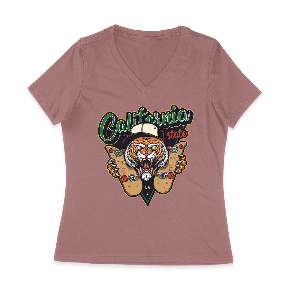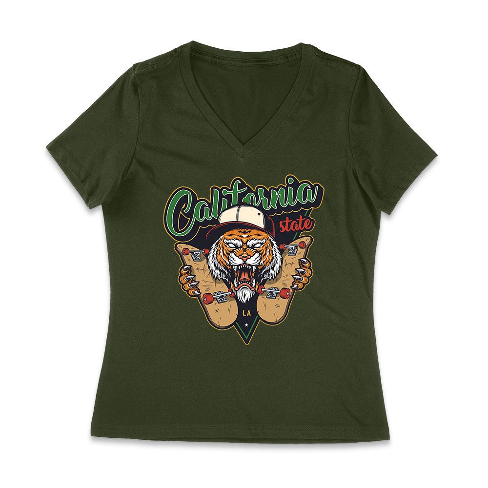 Fierce California Tiger Skateboarding T-Shirt – Bold Graphic Design for Skate Fans Women Jersey V-Neck