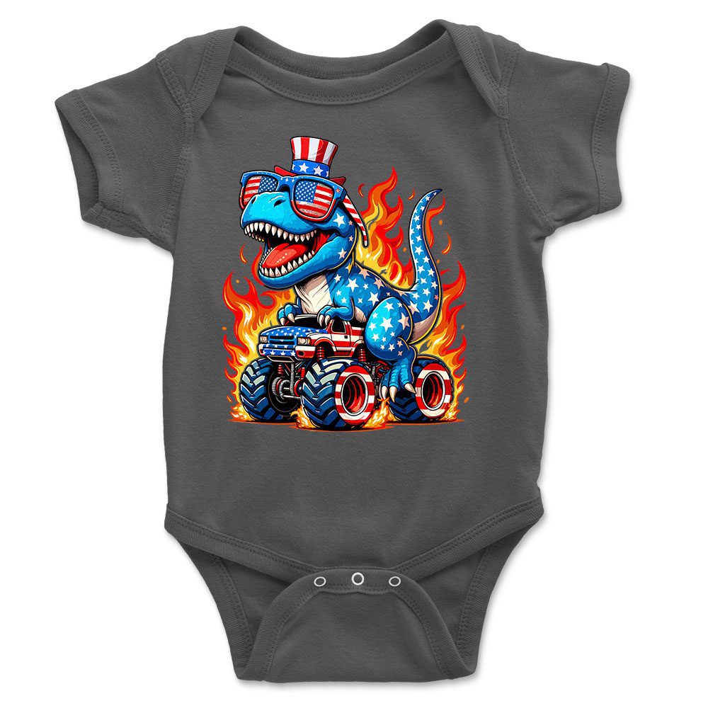 Fiery Blue T-Rex Thrashing on Monster Truck T-Shirt ? Vibrant Graphic Tee, Unisex, Ultimate Gift for Kids and Adults, Bold Design, Casual Excitement
